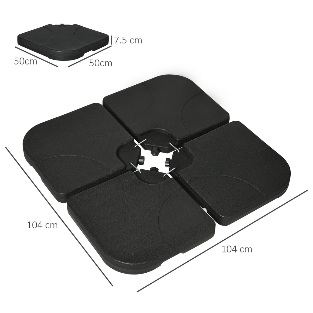 Base per Ombrellone 4 Pezzi in HDPE Riempibili 104x104x7.5 cm Nera
