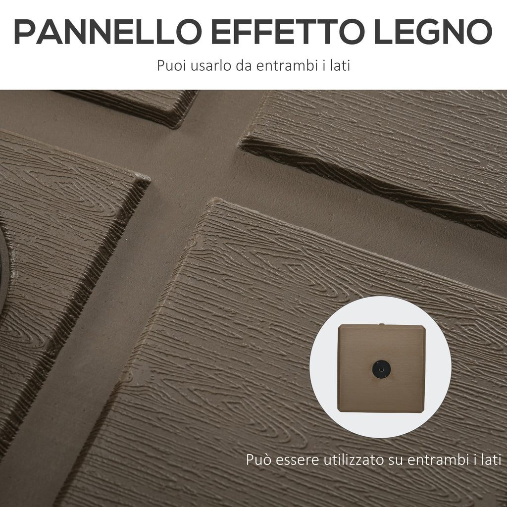 Dai un tocco di stile al tuo spazio aperto con la base per ombrellone dall'effetto legno elegante e funzionale. Questa base non solo aggiunge un tocco decorativo, ma è anche in grado di mantenere saldamente l'ombrellone da giardino in posizione. Grazie alla sua grande capacità, può pesare fino a 30 kg se riempita d'acqua o 40 kg se riempita di sabbia. Goditi il relax sotto il tuo ombrellone sorretto da questa base in plastica. Base ombrellone con altezza massima di 3.5 m e pali di 32 mm, 38 mm o 48 mm. Due manopole comprese per fissare saldamente il palo dell'ombrellone. Base per ombrellone da giardino realizzato in HDPE e metallo verniciato a polvere per uso esterno. Beccuccio laterale incluso per riempire con acqua e sabbia. Maniglia incorporata per un facile trasporto. Basamento per ombrellone ideale per l'uso in giardino, nel patio, a bordo piscina o in altri spazi esterni. La base per ombrellone può essere utilizzata su entrambi i lati. Montaggio richiesto.