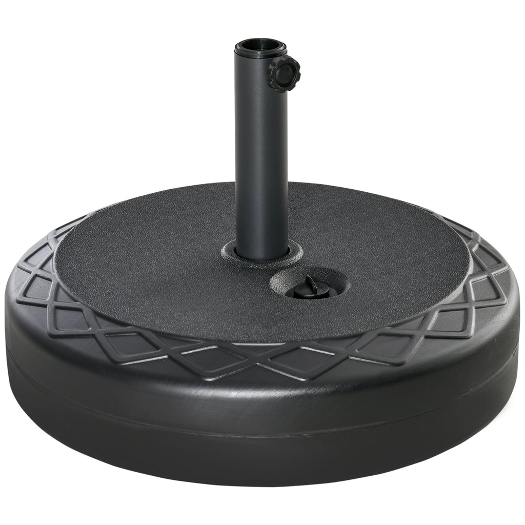 Genießen Sie Ihr Leben im Freien mit diesem Schirmständer. Diese Basis kann für Sonnenschirme mit einem Stockdurchmesser von 38 und 48 mm verwendet werden. Aus robustem HDPE-Kunststoff gefertigt, muss er mit Wasser gefüllt werden, um die Stabilität des Sonnenschirms zu gewährleisten. Im Garten, auf dem Balkon oder am Pool... das ist der Sonnenschirmständer, der zu Ihnen passt. Fügen Sie einfach einen schönen Sonnenschirm und einen kleinen Tisch hinzu, um Ihre eigene Oase der Entspannung im Schatten zu schaffen.