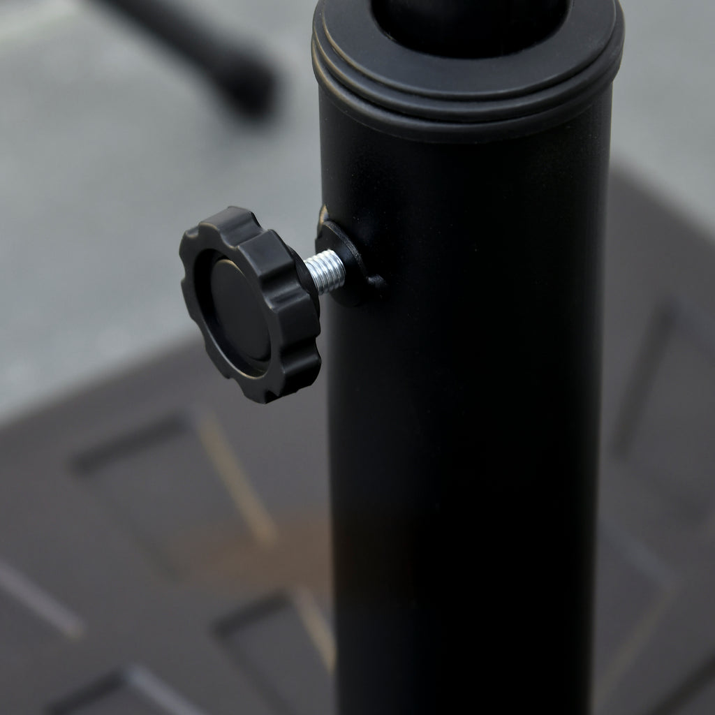 Goditi il giusto relax all'aperto con questa solida base per ombrellone. Il motivo semplice ed elegante arrederà a dovere il giardino o il patio ed è sufficiente abbinare l'ombrellone da giardino a un tavolo e a delle sedie per creare un'oasi di pace. Il basamento per ombrellone lo mantiene in posizione sicura e uniforme, in modo che l'ombrellone possa fornire l'ombra giusta in ogni momento. Goditi intere giornate sotto l'ombrellone con questa pratica base per ombrelloni per esterno. Peso della base per ombrellone applicabile a ombrelloni da giardino con pali da Ø32 mm, Ø38 mm e Ø48 mm. Basamento per ombrellone realizzato in resina e metallo con rivestimento protettivo per uso esterno. Manopola di serraggio laterale per fissare i pali in modo stabile. Supporto per ombrellone adatto per qualsiasi spazio esterno. Montaggio richiesto.