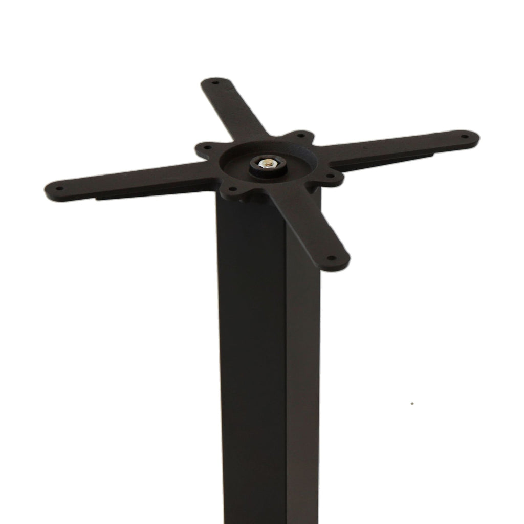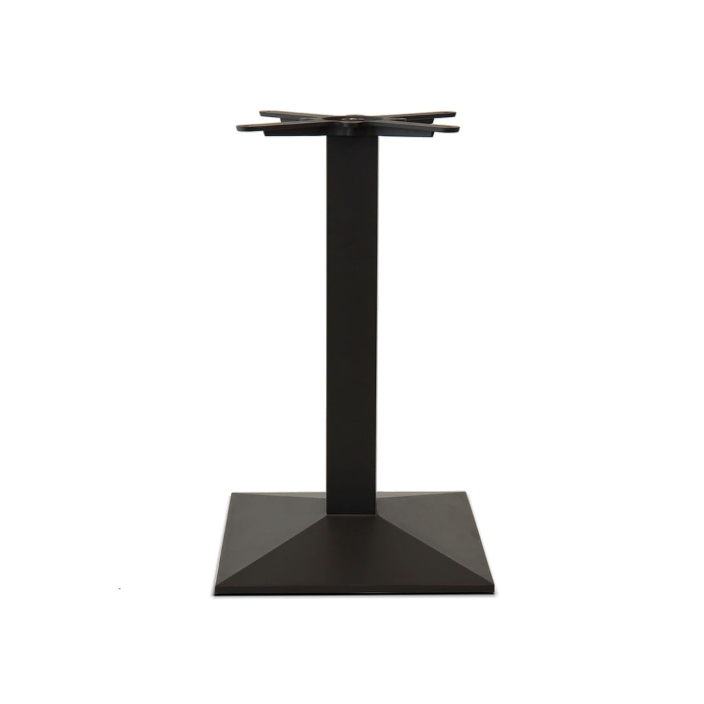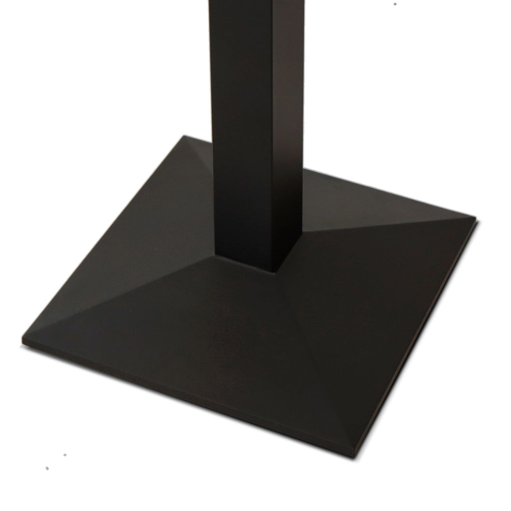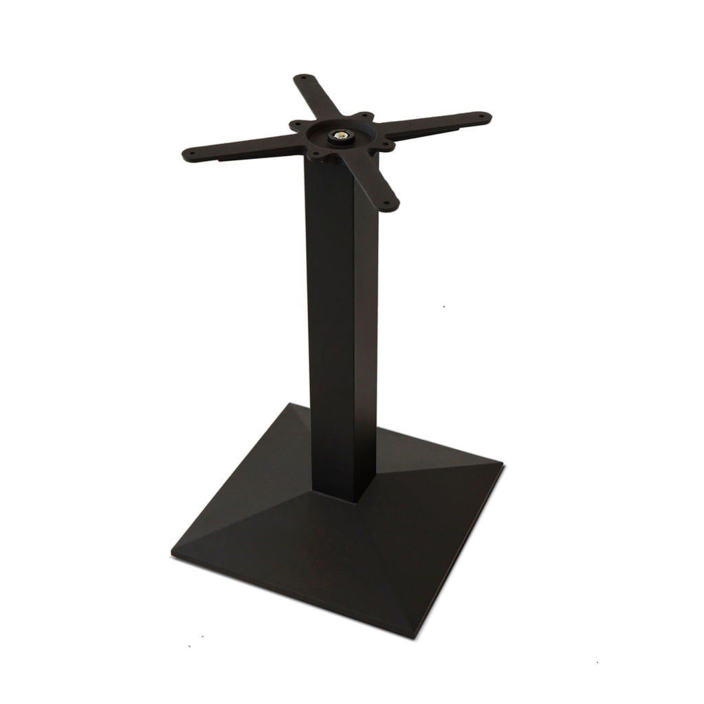 Basamento in stile moderno per tavolo in ghisa e tubo in acciaio verniciato, caratterizzato da una superficie liscia e dotato di un piede quadrato a piramide. Ideale per creare soluzioni personalizzate, compatibile con una vasta scelta di piani.