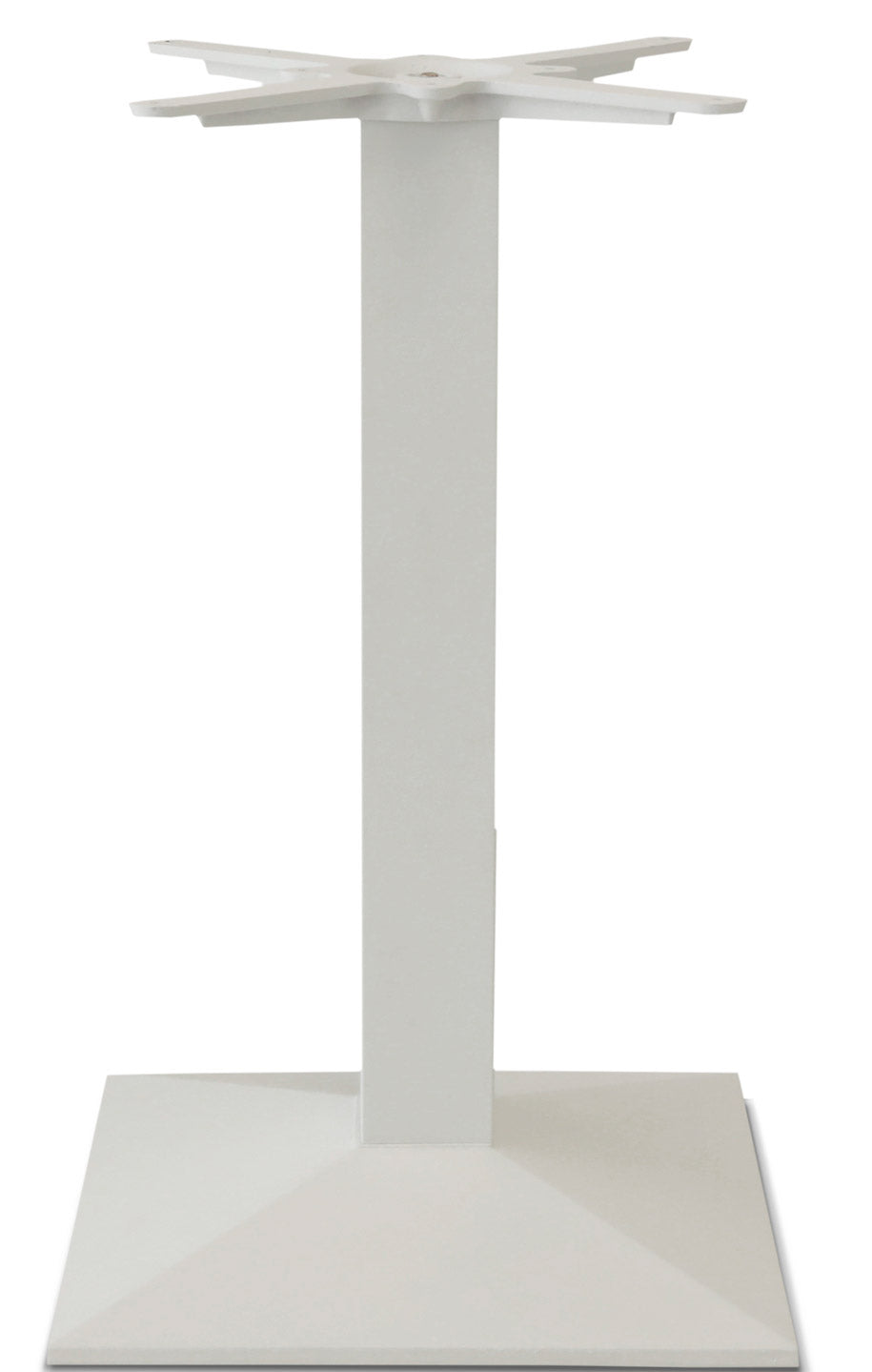 Basamento in stile moderno per tavolo in ghisa e tubo in acciaio verniciato, caratterizzato da una superficie liscia e dotato di un piede quadrato a piramide. Ideale per creare soluzioni personalizzate, compatibile con una vasta scelta di piani.