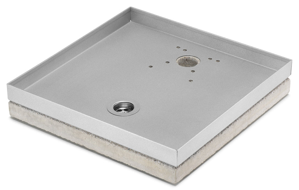 Base Portaciottolo per Fontane 40x40x8 cm in Metallo con Base in Cemento Belfer 42/BSE/10 Alluminio