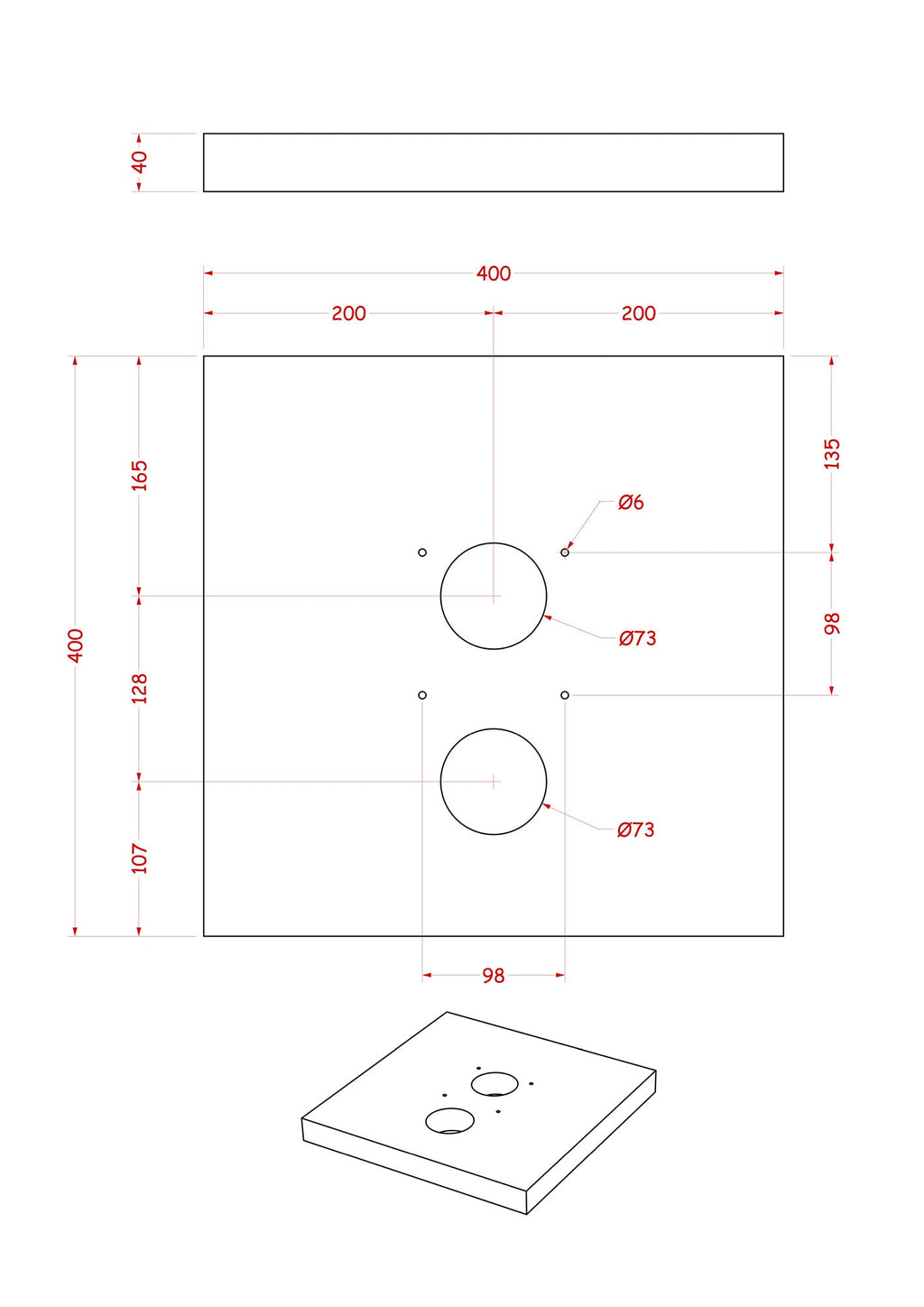 - Dimensioni: L 40 x P 40 x H 4 cm