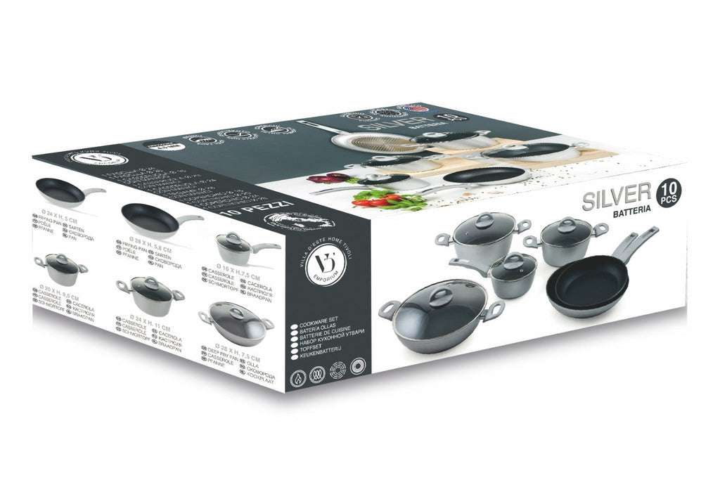 10-teiliges Kochgeschirr-Set aus Antihaft-Aluminium Villa d'Este Home Tivoli Silber