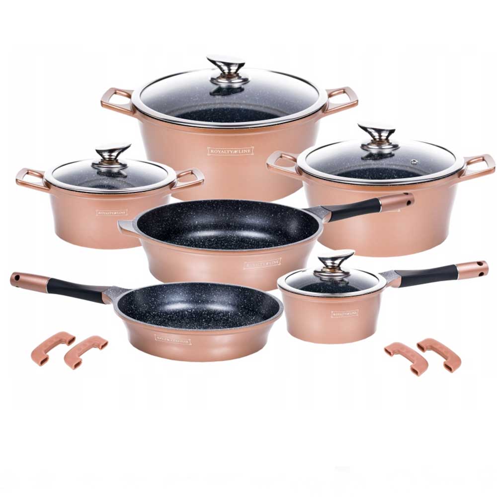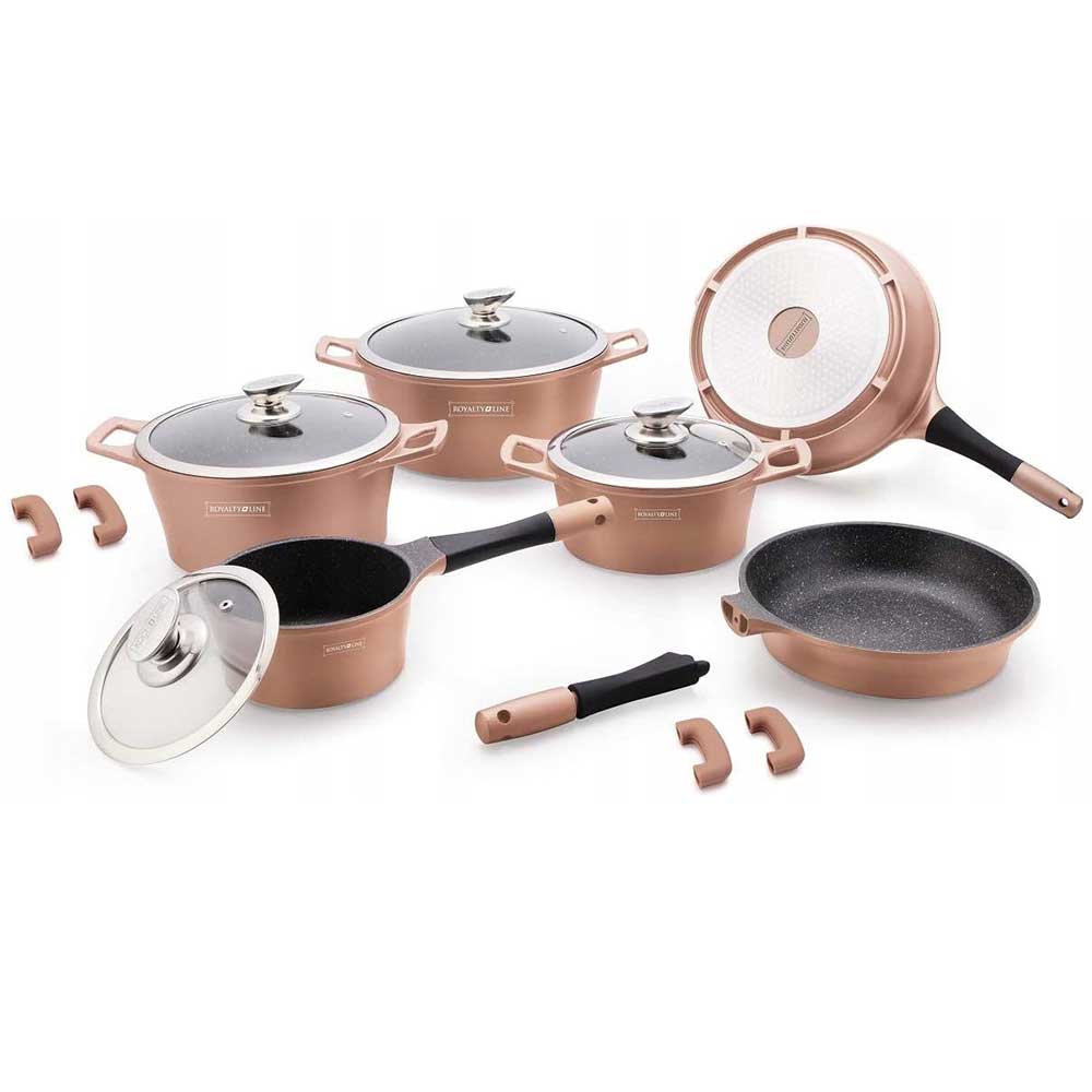• Set di pentole in alluminio pressofuso da 14 pezzi rivestito in marmo