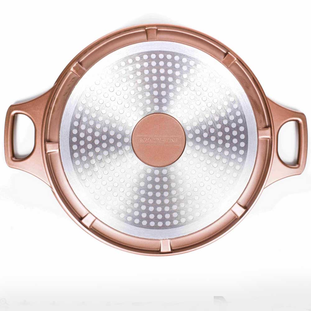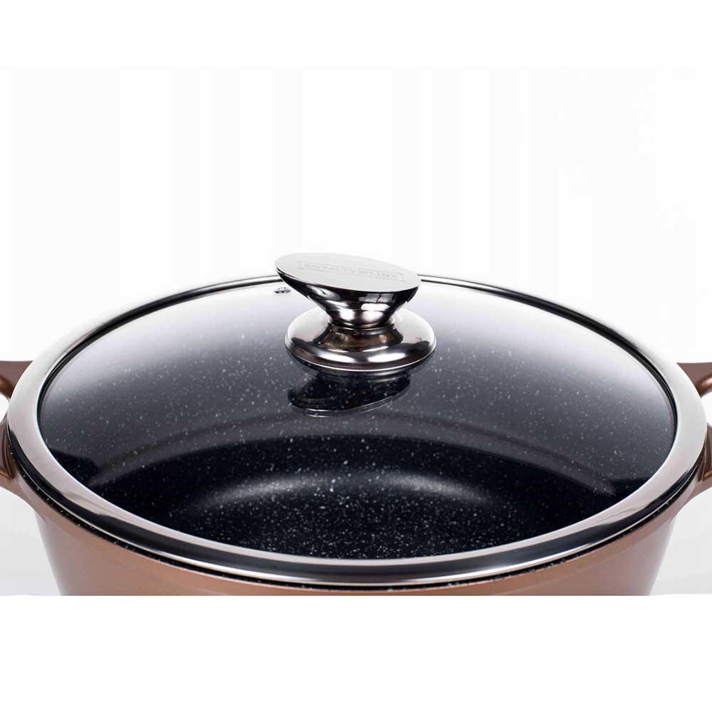 • 1x Batterie Pentole e Padelle da Cucina 14 Pezzi Antiaderente In Pietra Lavica Coperchio in Vetro Clip Maniglie Rimovibili Colore Rame