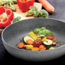 Die hohe Qualität der Antihaftbeschichtung, aufgesprüht, mehrschichtig mit Mineralpartikeln verstärkt, garantiert eine bessere Antihaftbeschichtung und eine hohe Abriebfestigkeit und verleiht Eigenschaften und Ästhetik, die dem Kochen auf Stein ähneln.
