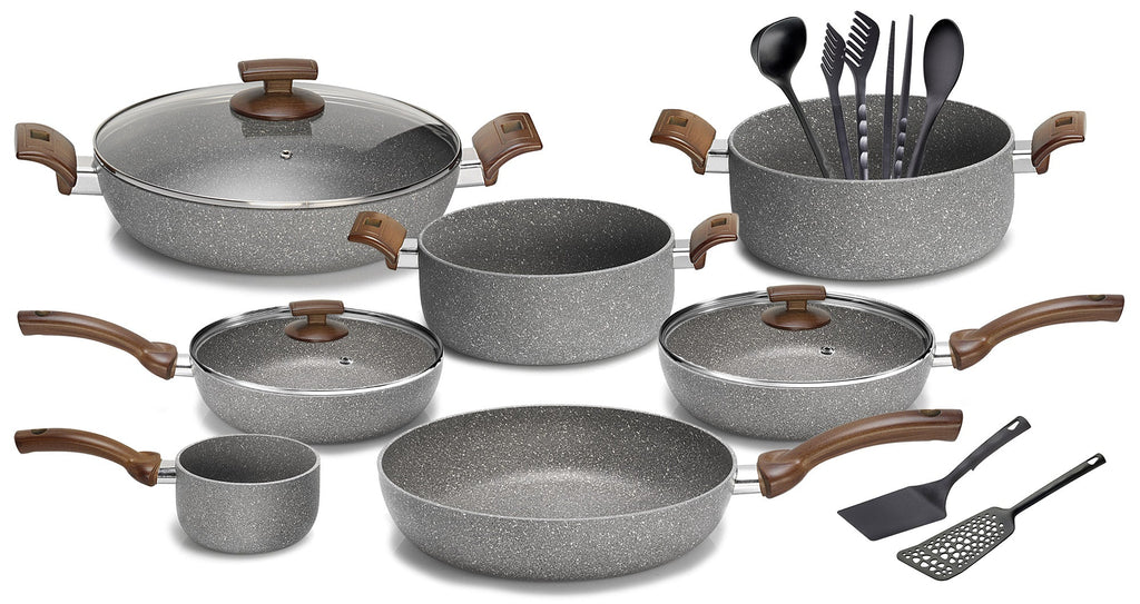 Olympia Woody 16-teiliges Kochgeschirr-Set aus Antihaft-Aluminium