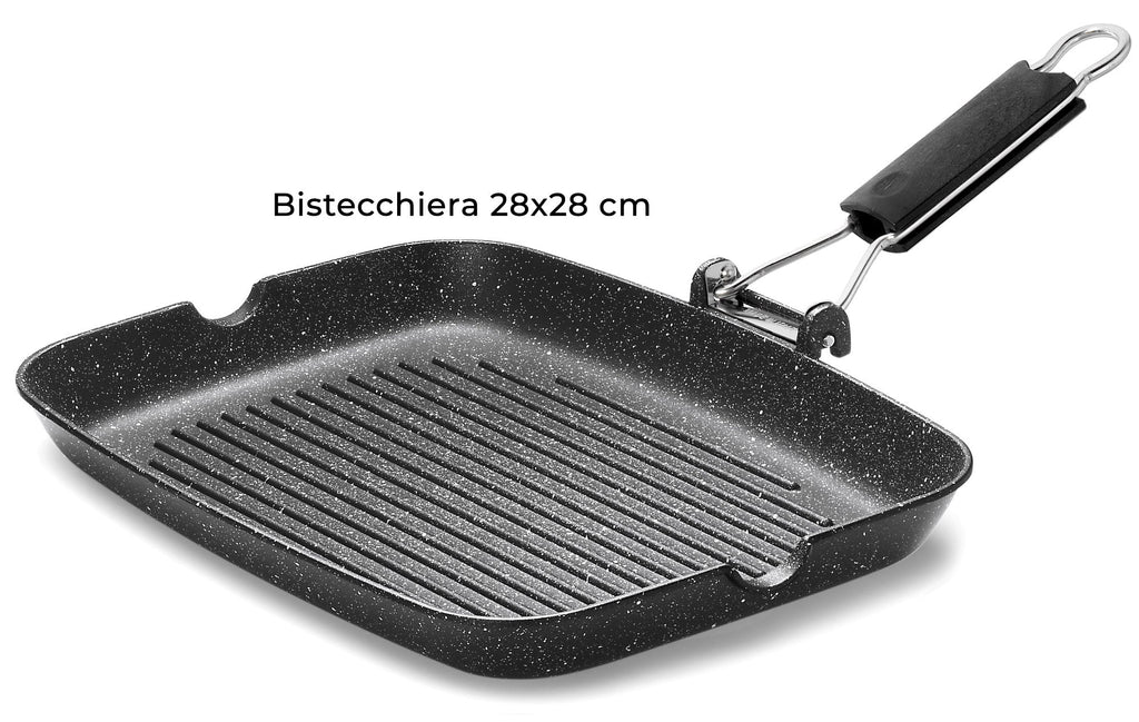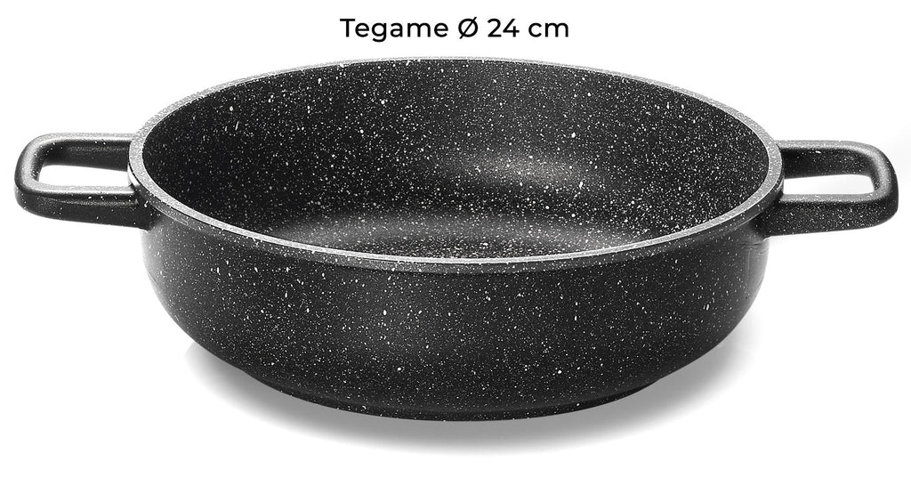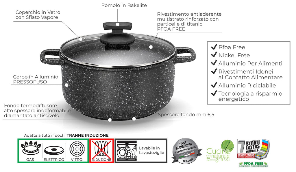 EISERNER KOCH . Das im Handel " STONE " genannte Kochgeschirr ist für uns kein vorübergehender Trend, sondern echte Qualität! Sammlung von Bratpfannen , Kochtöpfen , Kochtöpfen , Grills aus Aluminiumdruckguss * , eine Technologie, die unterschiedliche Dicken ermöglicht, die am Boden größer sind, um die Hitze gleichmäßig zu verteilen und aufrechtzuerhalten, auch nachdem die Pfanne von der Flamme genommen wurde, was bedeutet, dass sie homogen ist Kochen und erhebliche Energieeinsparungen.