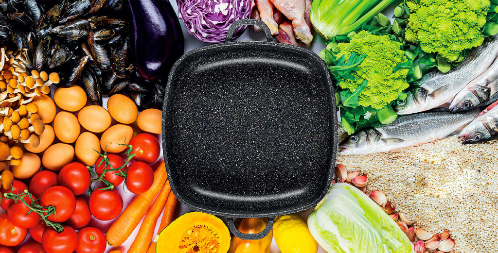 Die hohe Qualität der mehrschichtigen Antihaftbeschichtung , die mit Mineralpartikeln verstärkt ist, garantiert eine größere Antihaft- und Abriebfestigkeit und verleiht Eigenschaften und Ästhetik, die dem Kochen auf Stein ähneln. Beim Kochen mit der Hard Cook-Linie ist es nicht notwendig, Fette zu verwenden, für eine gesunde, diätetische und natürliche Küche .