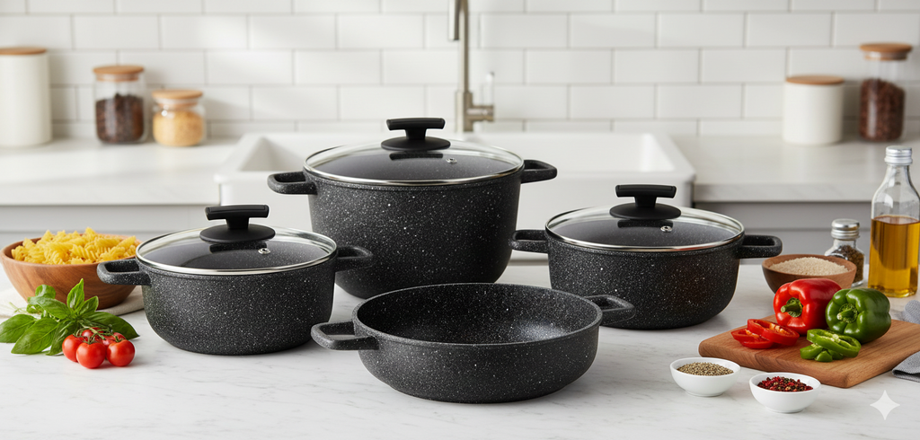Olympia Hard Cook 7-teiliges Kochgeschirr-Set aus Antihaft-Druckguss-Aluminium