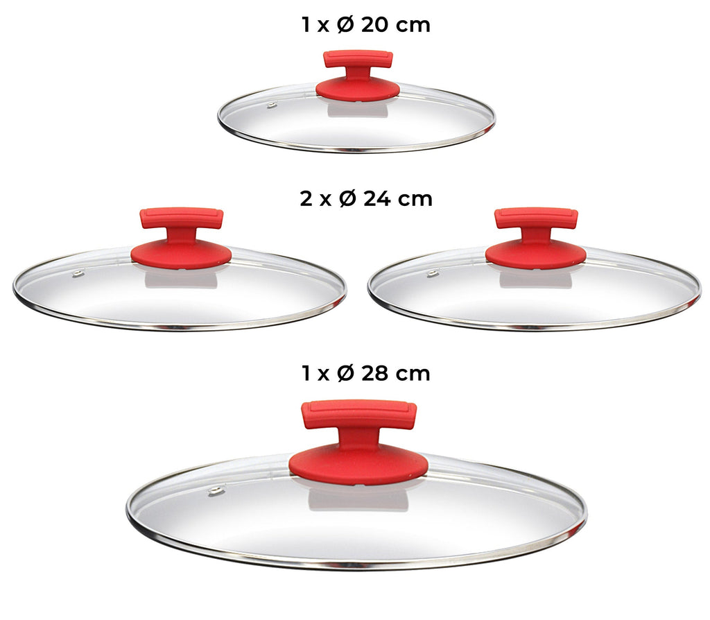 Die hohe Qualität der titanverstärkten Multilayer-Antihaftbeschichtung garantiert bessere Antihafteigenschaften und eine hohe Abriebfestigkeit. Beim Kochen mit der Red-Linie ist es nicht erforderlich, Fette zu verwenden, wodurch eine gesunde, diätetische und natürliche Küche erreicht wird .