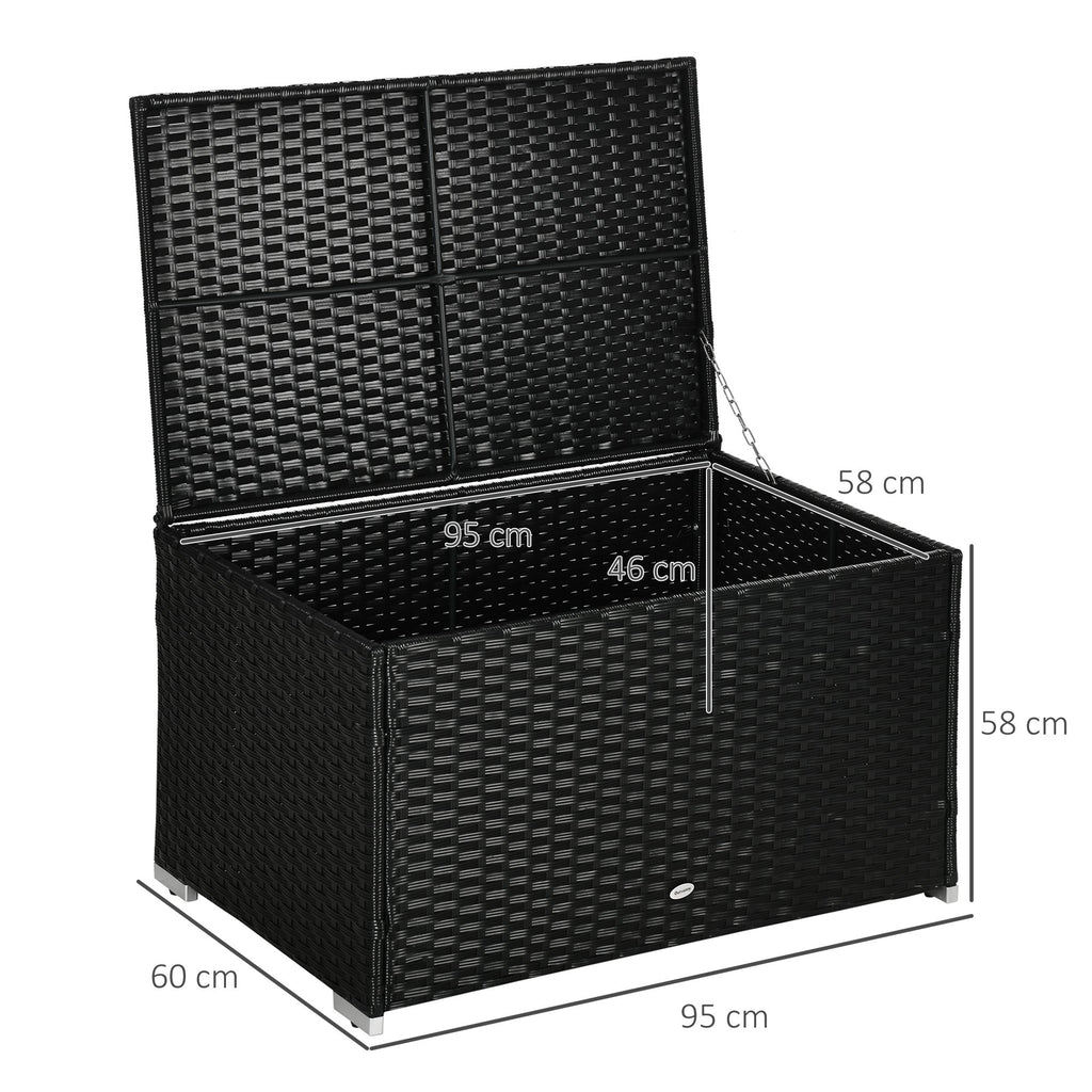 Baule Cassapanca da Giardino 95x60x58 cm in Rattan e Acciaio Nero