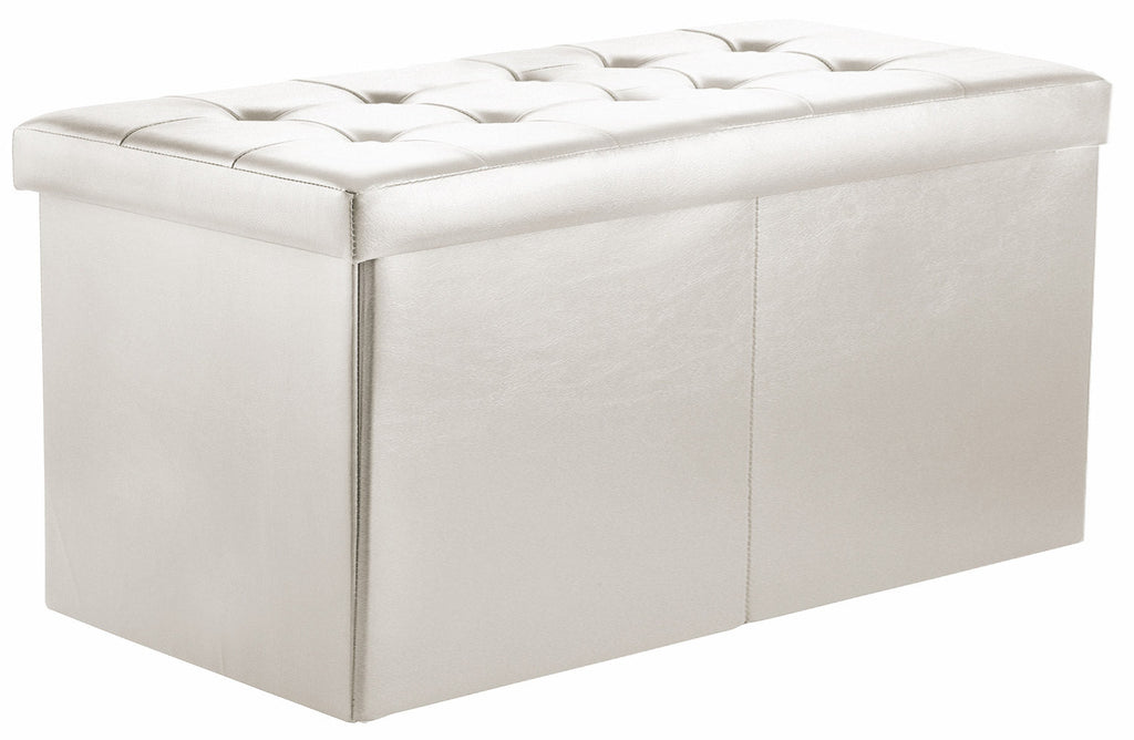 Pouf mit Stauraum und Sitztruhe aus Soriani-Kunstleder, glänzend, elfenbeinfarben