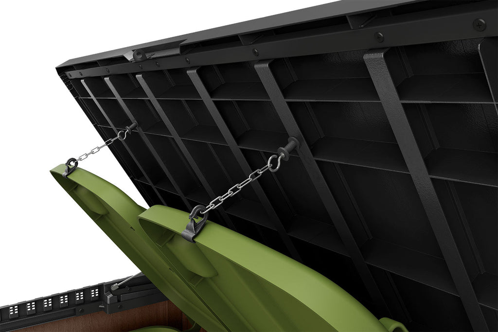 Store-It-Out Darwin è il porta attrezzi da esterno ideale per chi cerca praticità e resistenza. Realizzato in EVOTECH+, offre una struttura robusta con pareti a doppio strato e una capacità di 1150L., perfetta per riporre attrezzi e bidoni. Il coperchio con pistoni idraulici garantisce un’apertura e chiusura accompagnata facile e sicura. È progettato per contenere due bidoni da 240L, con ganci inclusi per l'apertura. La chiusura lucchettabile assicura maggiore sicurezza, mentre la resistenza ai raggi UV e alle intemperie lo rende perfetto per ogni condizione climatica. Facile da assemblare, è la soluzione ideale per un’organizzazione efficiente e sicura nel tuo spazio esterno.