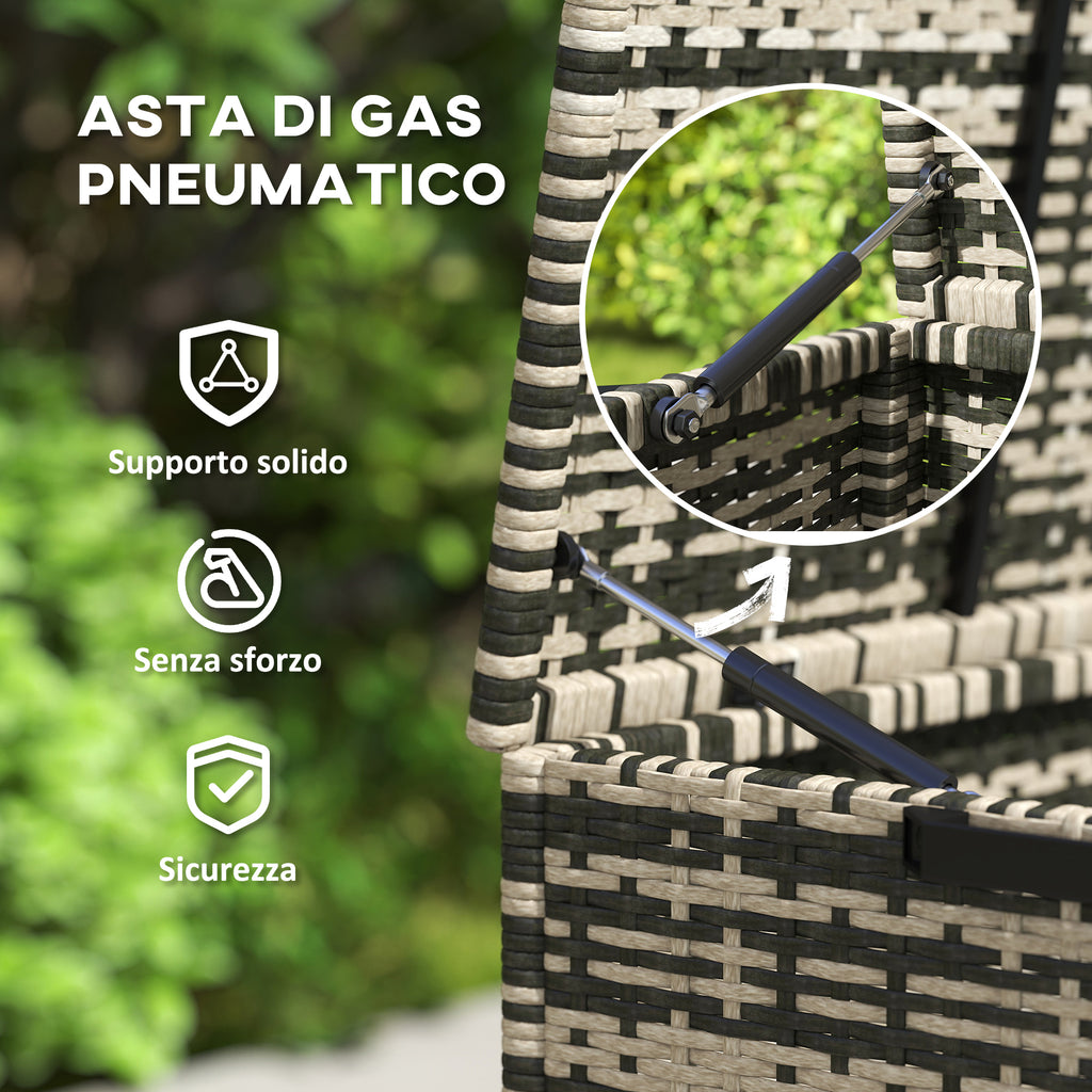 Baule da Giardino 118x57x69 cm Capacità 350L Apertura Frontale e Superiore in Rattan PE Grigio