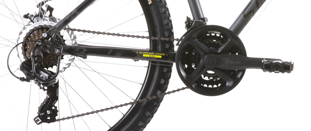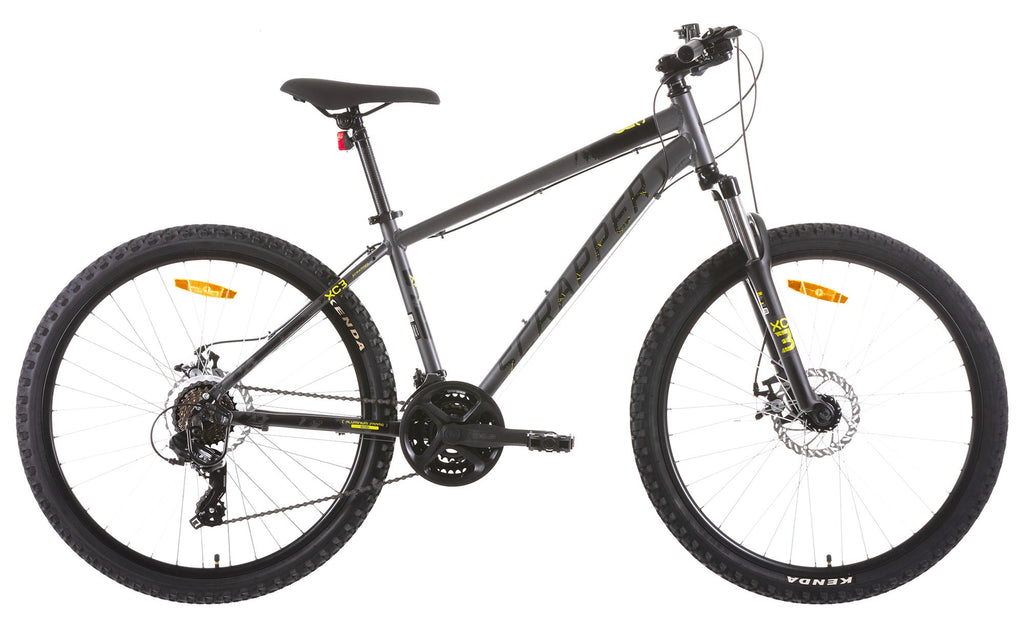 Questa MTB è dotata di un telaio e una forcella in alluminio, che la rendono leggera e resistente. Con una dimensione di 26 pollici, è adatta per affrontare tutti i tipi di terreni. La forcella sospensione assicura una guida confortevole anche su terreni accidentati. Il cambio Shimano TY300, il deragliatore anteriore e i freni a disco meccanici garantiscono una trasmissione fluida e una frenata efficiente. Il colore grigio conferisce a questa bici un aspetto moderno ed elegante.