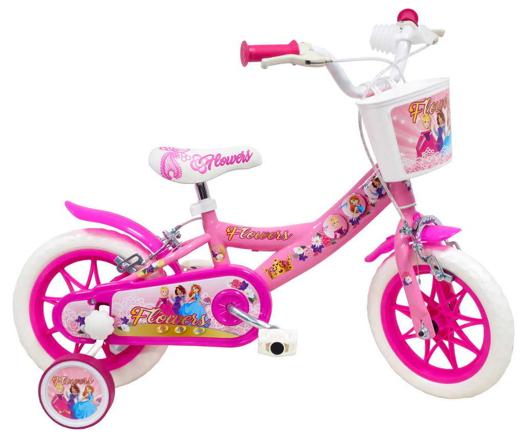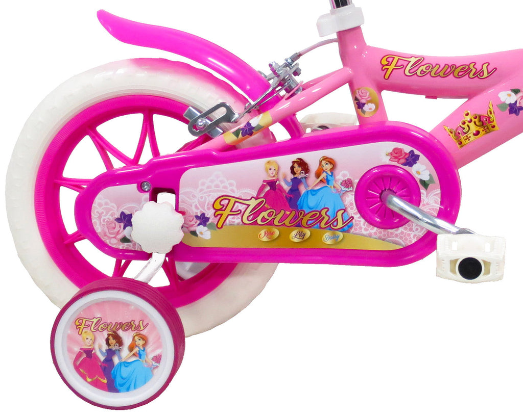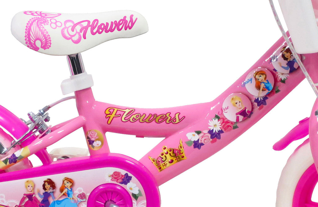Bicicletta per Bambina 12"" 2 Freni Flowers Rosa