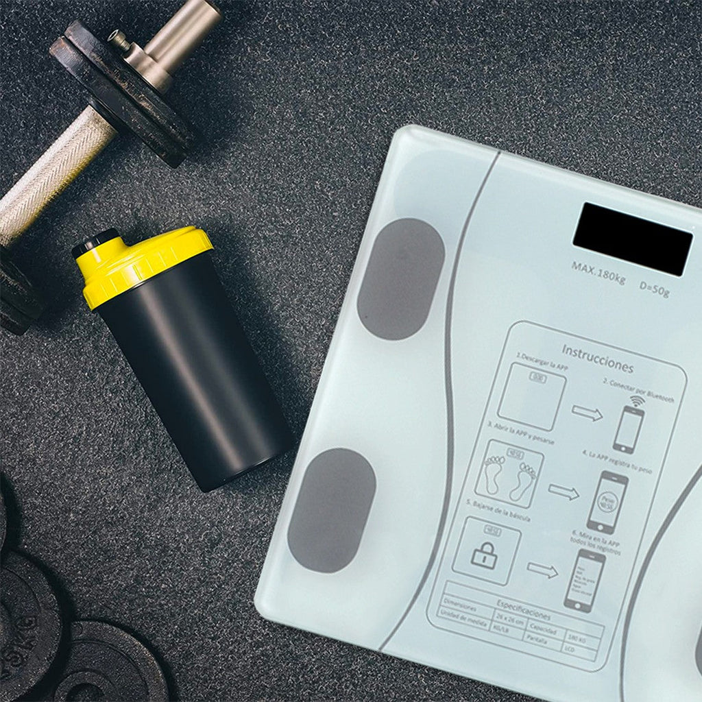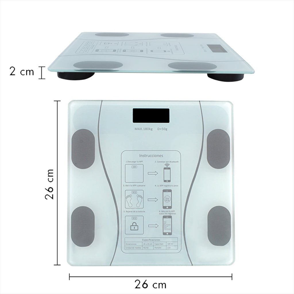 Digitale Waage Max 180 kg aus Glas mit weißer Bluetooth-App