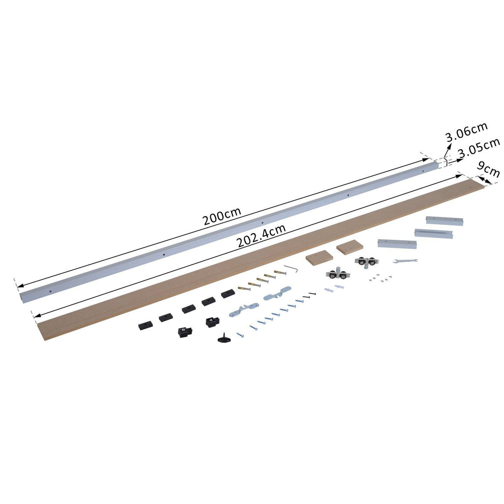 Laufschiene für Schiebetüren mit Zubehörset Rustikaler Stil in Holz 200 cm