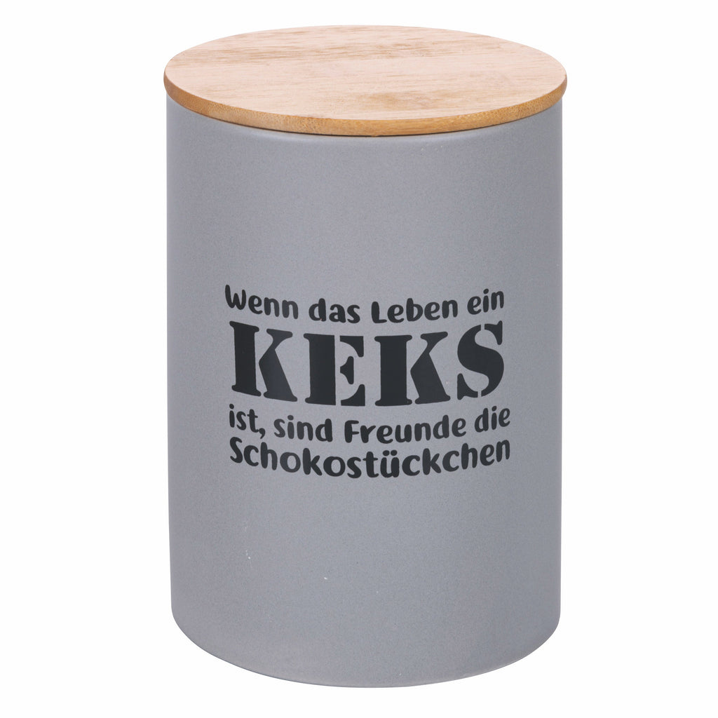 Keksdose mit Schriftzug Ø12,5x18,5 cm in Dolomite mit Bambusdeckel Villa d'Este Home Tivoli