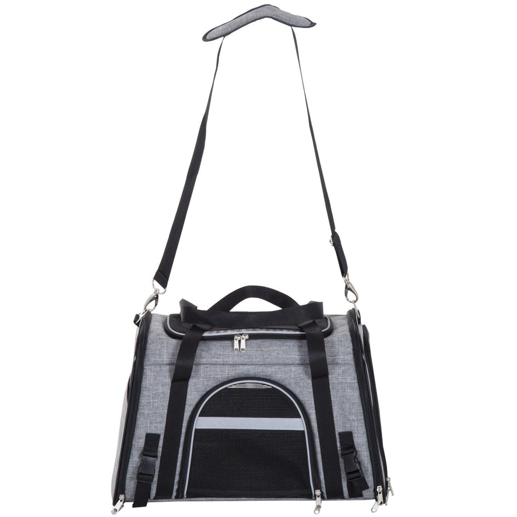 Faltbare Tragetasche für Hunde und Katzen mit Schultergurt aus grauem Oxford-Stoff 50 x 26,5 x 33 cm