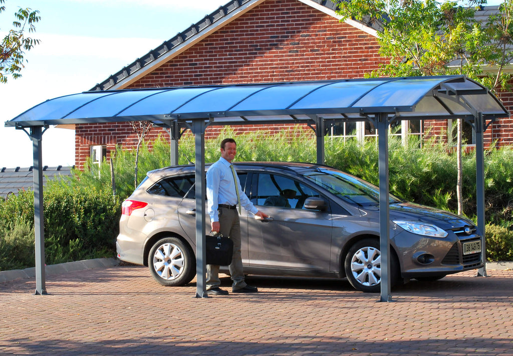 Der elegante SIENA Carport hat eine besonders widerstandsfähige Aluminiumstruktur. Es wurde entwickelt, um Ihre Outdoor-Schutzanforderungen für Ihr Auto, Boot, Wohnmobil und Ihre Möbel vor Regen, Schnee, Hagel und UV-Strahlen zu erfüllen. Der SIENA Carport ist äußerst robust und stabil, wartungsfrei und hat eine lange Lebensdauer. Die Aufmerksamkeit für kleine Details erhöht den Wert Ihres Carports. Der SIENA ist ein Hochleistungs-Carport, der so konzipiert ist, dass er einfach von nur 2 Personen installiert werden kann und keine Erfahrung, Fähigkeiten und professionelles Werkzeug erfordert. Es bietet Ihrer Familie viele Jahre lang eine stilvolle, robuste, wartungsfreie und rostfreie Abdeckung