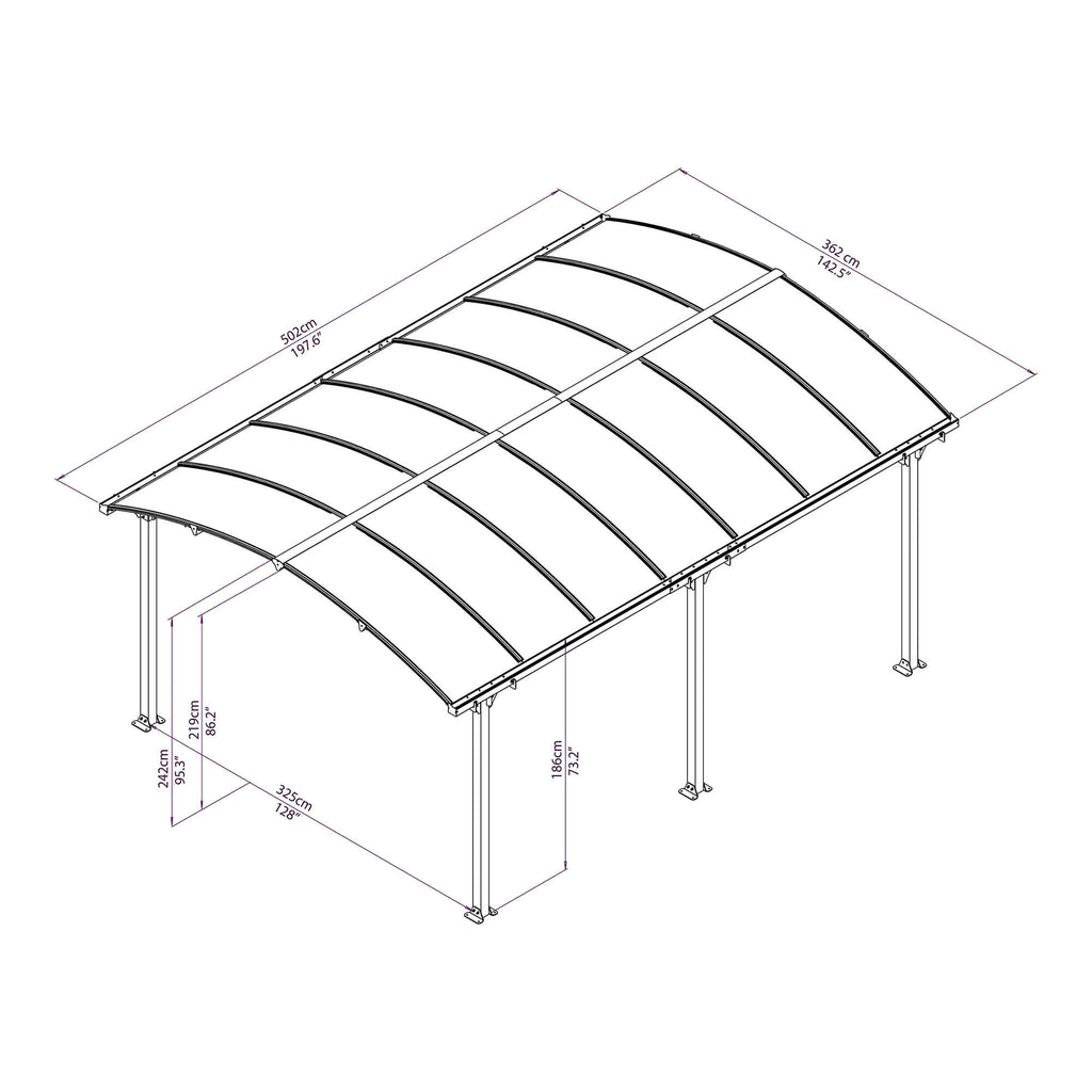 Aluminium Carport Outdoor 362x502cm H242cm Onduline Carport Siena