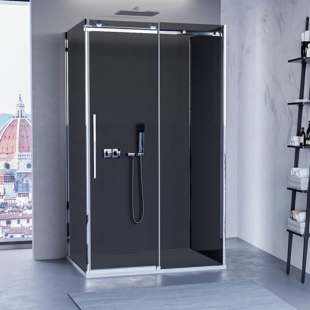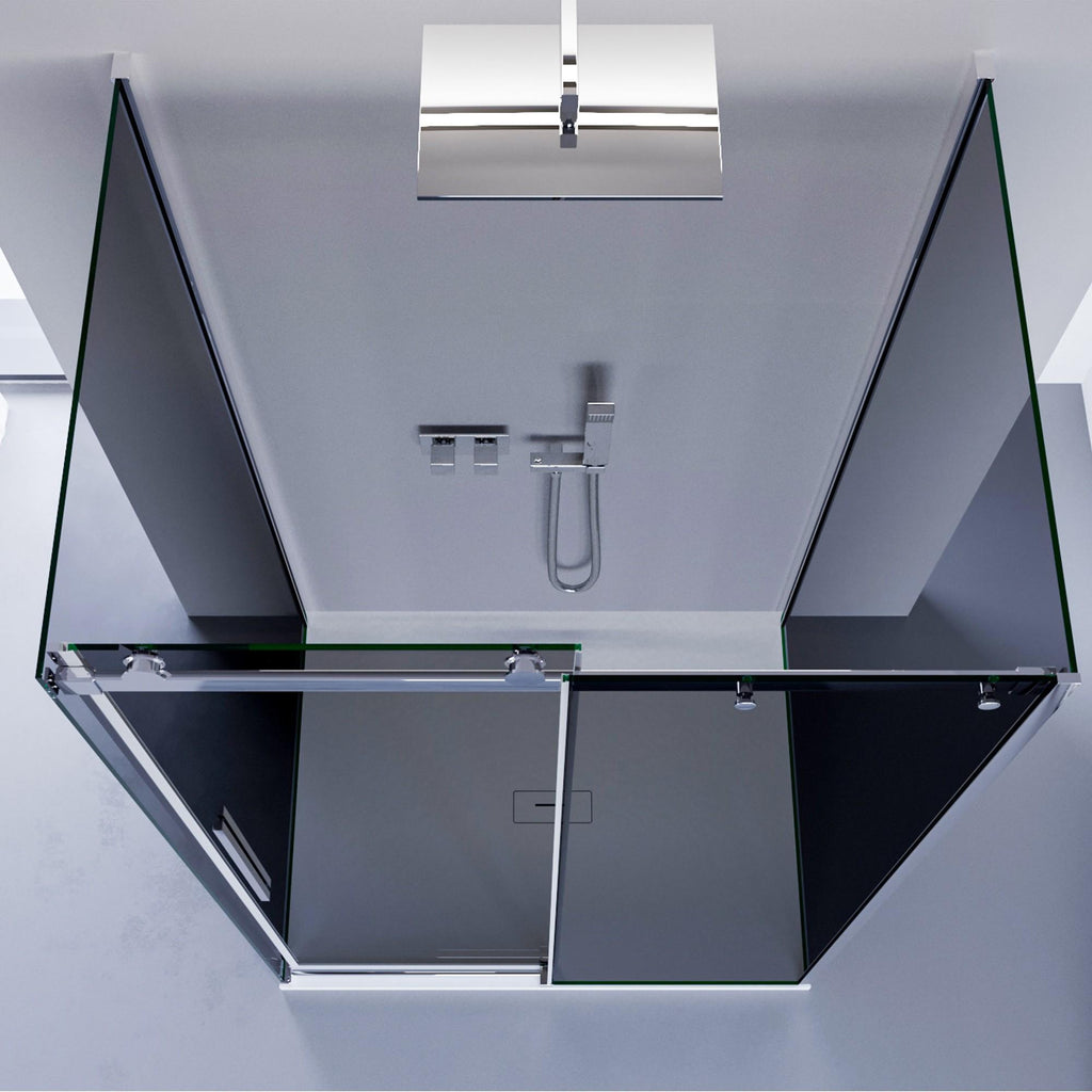 Duschabtrennung 3 Seiten 1 Schiebetür in Rauchglas 8mm H195 Bonussi Alina Verschiedene Größen