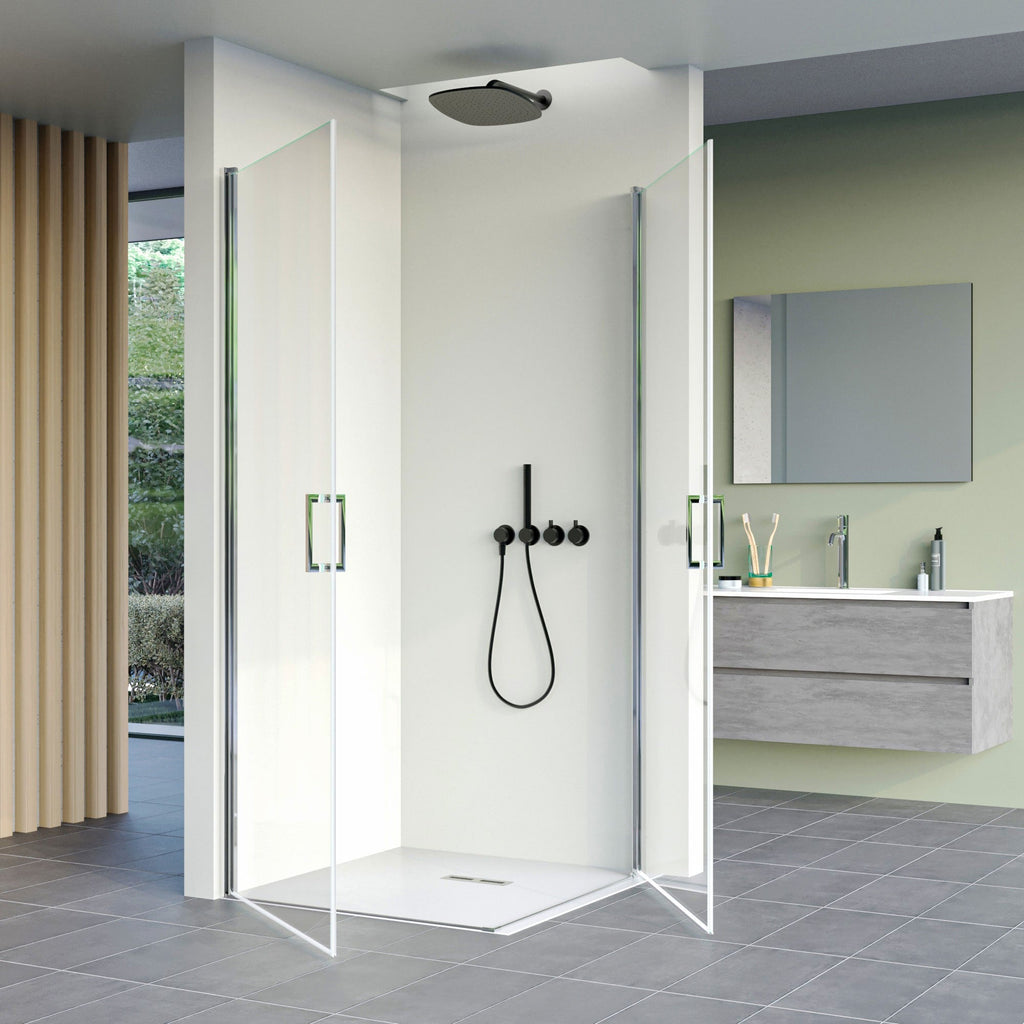 Box Doccia Angolare 90x90 cm 2 Ante Battenti in Cristallo Trasparente 6mm H195 Bonussi Jenny