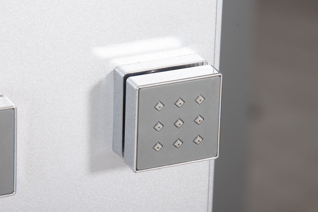 Aluminium-Tragprofile, LED-Innenbeleuchtung, Dampfabzug, Radio, Telefonhörer, Zentralbrause, Gleitstange, 6 leistungsstarke, verstellbare Hydrodüsen für verstellbare Schultern und Rücken, Touchscreen-Digitaldisplay zur Auswahl aller gewünschten Duschfunktionen, Dampfgenerator für die Türkisches Bad mit entspannender und belebender Wirkung, ein Flaschenhalter für Schaumbad oder anderes.