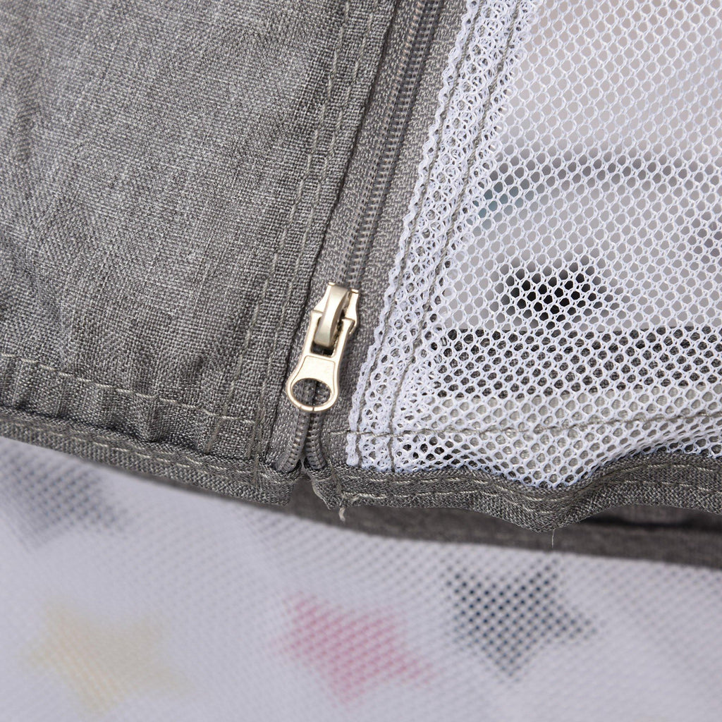 - ROBUST: Die ausgewählten Materialien sind ungiftig und widerstandsfähig. Sie hat einen runden Metallrahmen, vier PP-Beine (um den Boden der Box vom Boden fernzuhalten) und einen grauen Oxford-Stoffbezug.