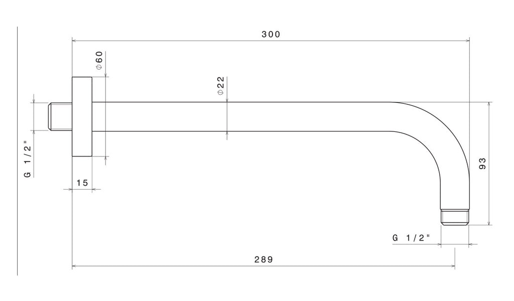 Runder Duschkopfarm 30 cm aus Edelstahl Nile Satin