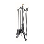 Set Camino 4 Pezzi con Pomolo decorativo in Ottone in Ferro Verniciato Grigio Martellato