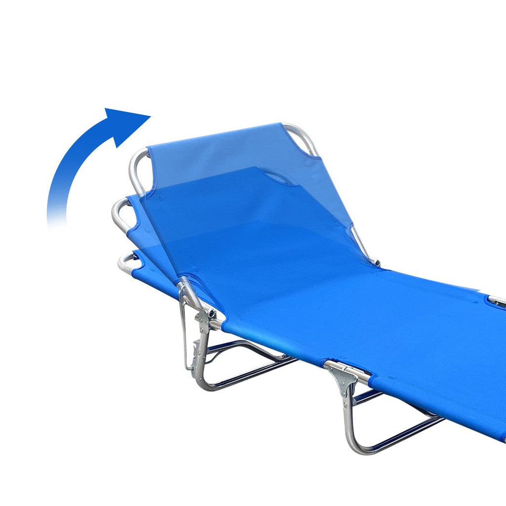 Kompakte Sonnenliege mit Aluminiumstruktur und blauem Oxford-Gewebe