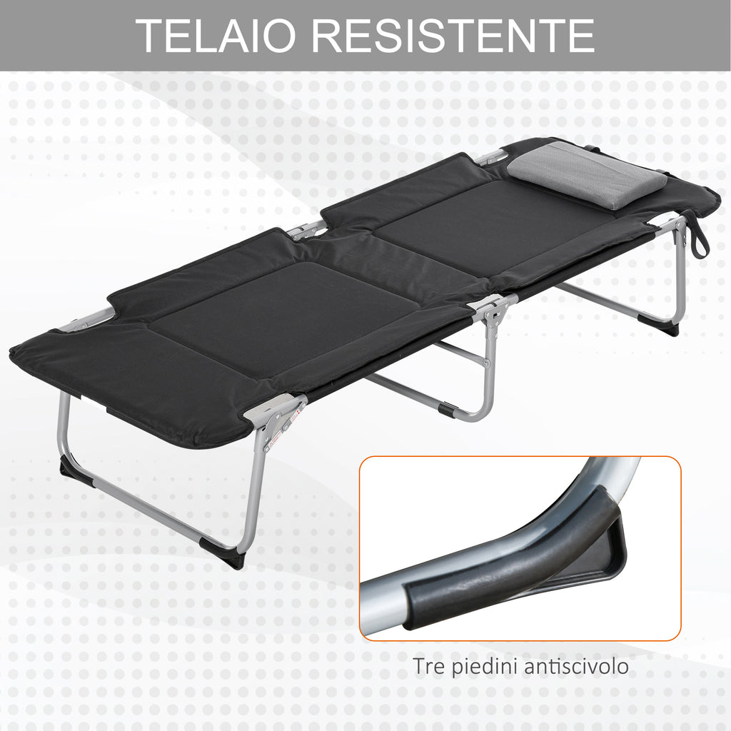 Faltbares Campingbett 183 x 66 x 33 cm aus Metall und schwarzem, gepolstertem Oxford-Stoff