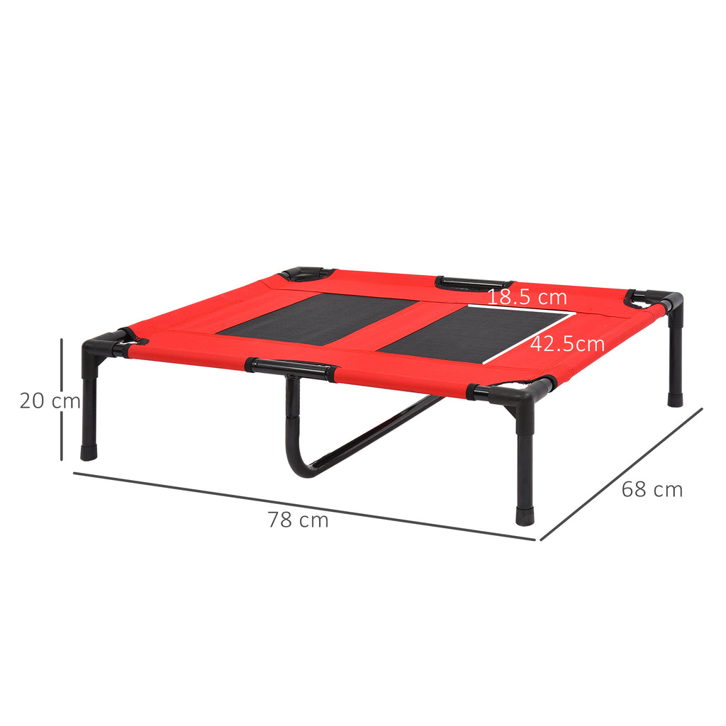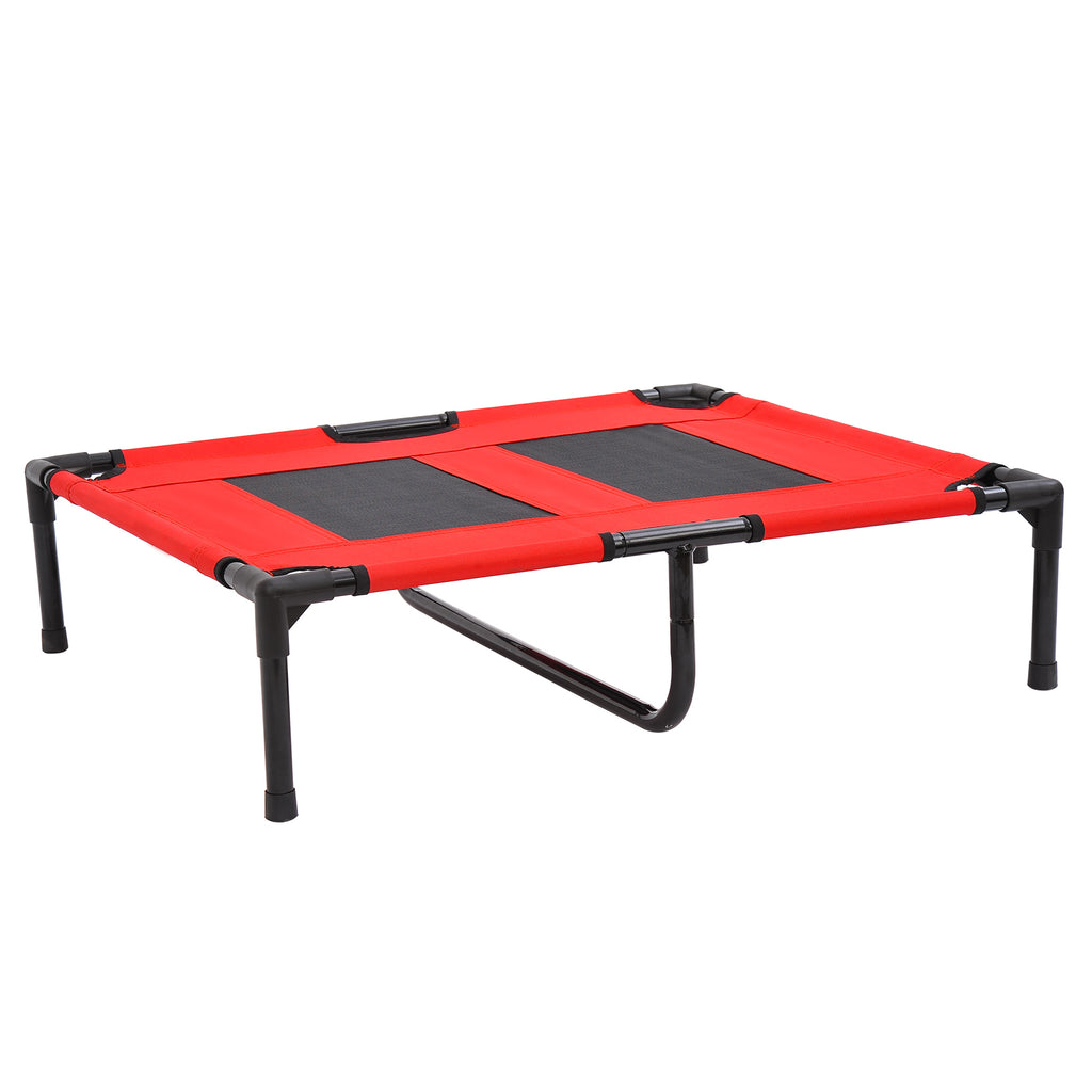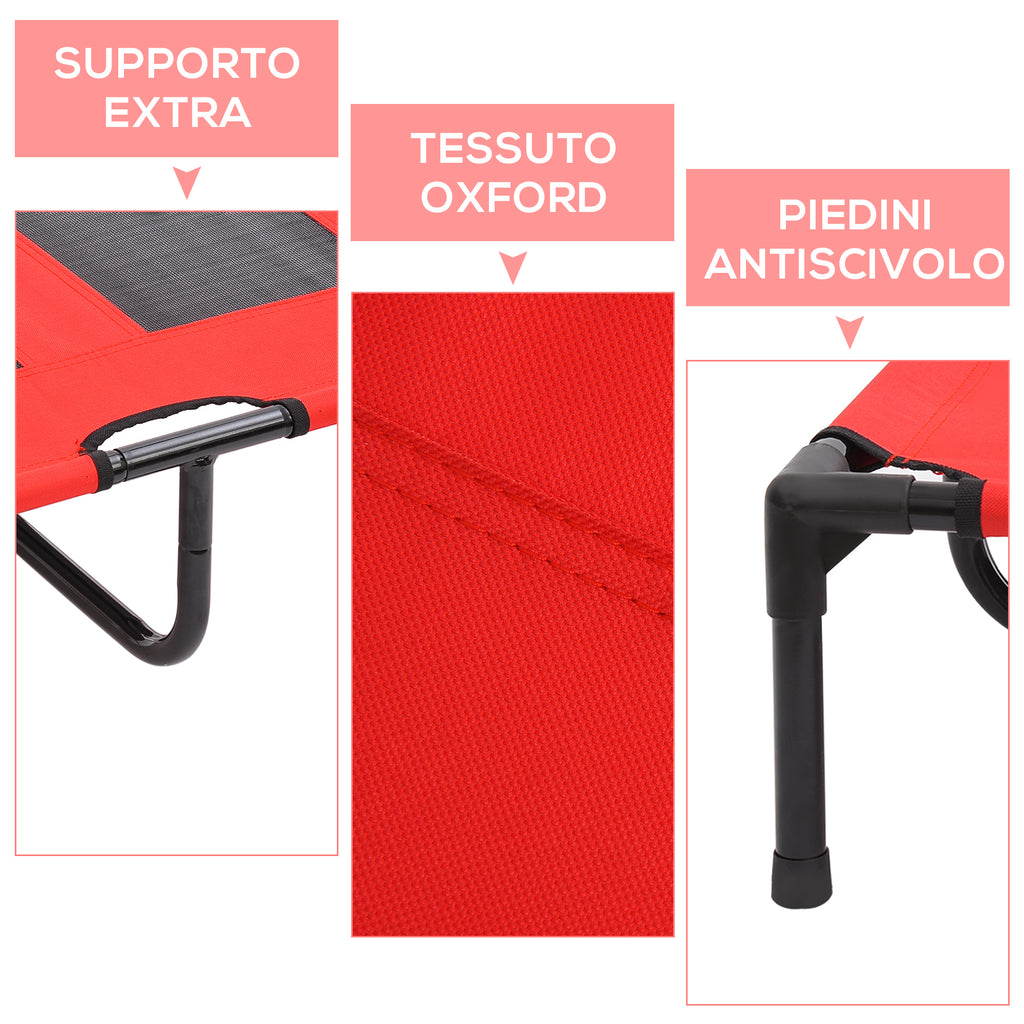 Tragbares Bett für Hunde 78 x 68 x 20 cm bis 18 kg aus Metall und rotem Oxford-Stoff