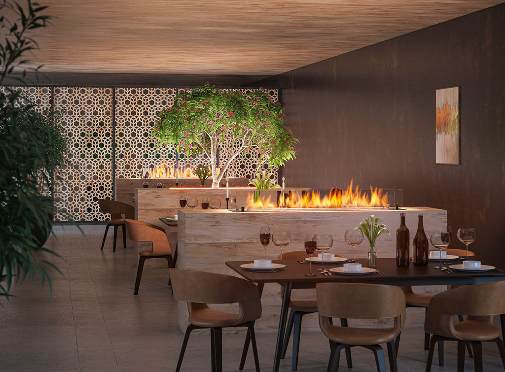 L'inserto in fibra ceramica insieme alla rete aumenta la sicurezza, oltre a prolungare e ottimizzare il processo di combustione. La barra scorrevole consente di regolare la dimensione della fiamma e spegnere il camino in sicurezza, e la forma dell'onda crea un ulteriore effetto 3D.