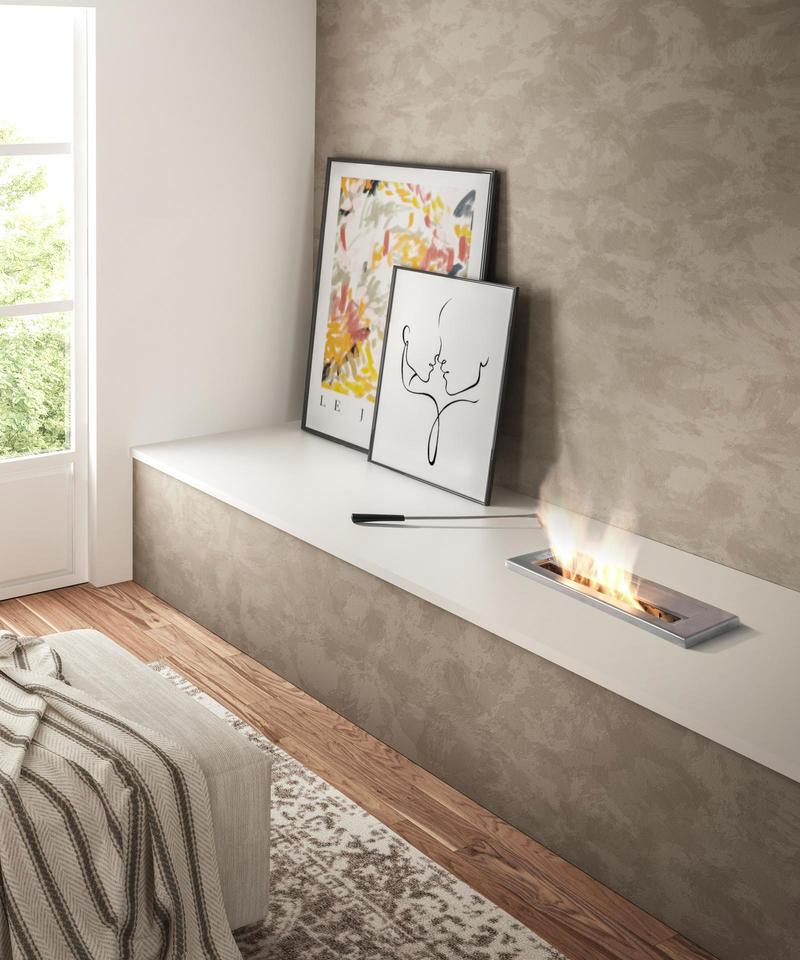 Eleganter eingebauter Bioethanol-Kaminbrenner, perfekt für eine moderne Umgebung.