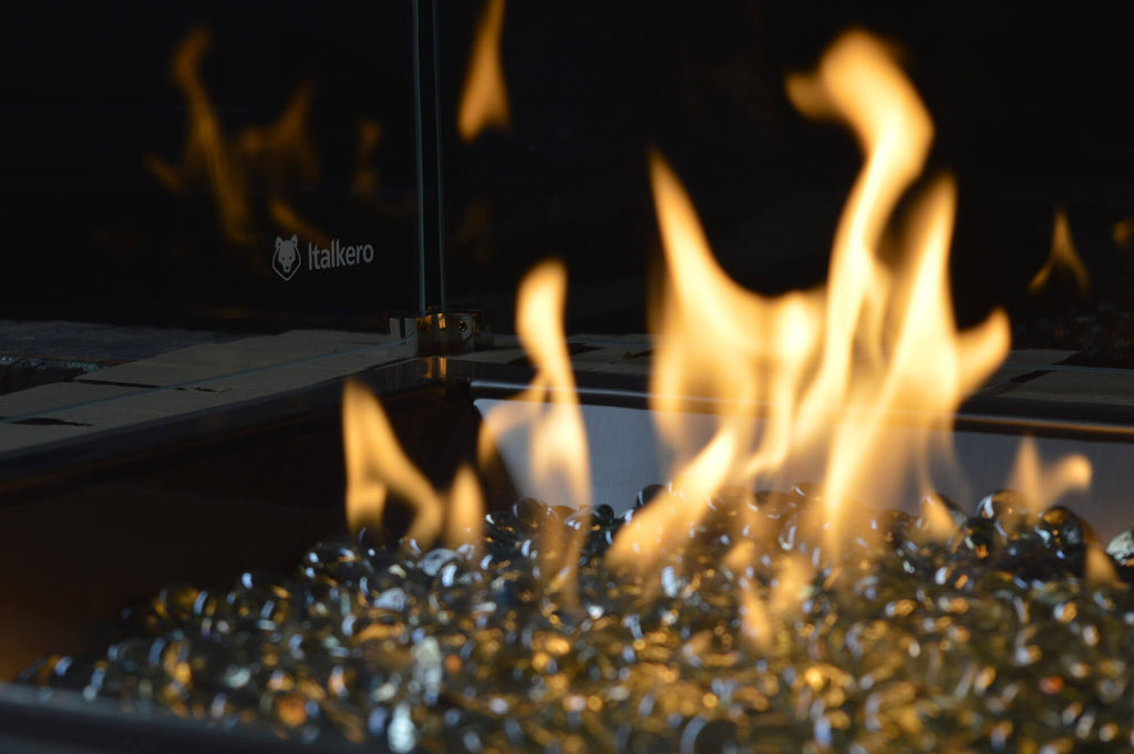 - Ausstattung: Stahlabdeckung, Windschutzglas, Lavasteine, Holz, Glassteine