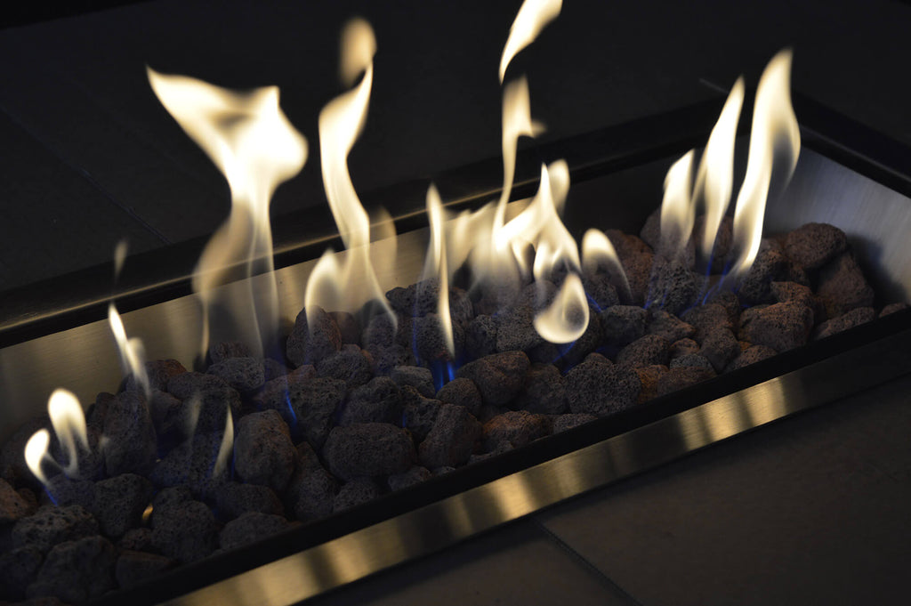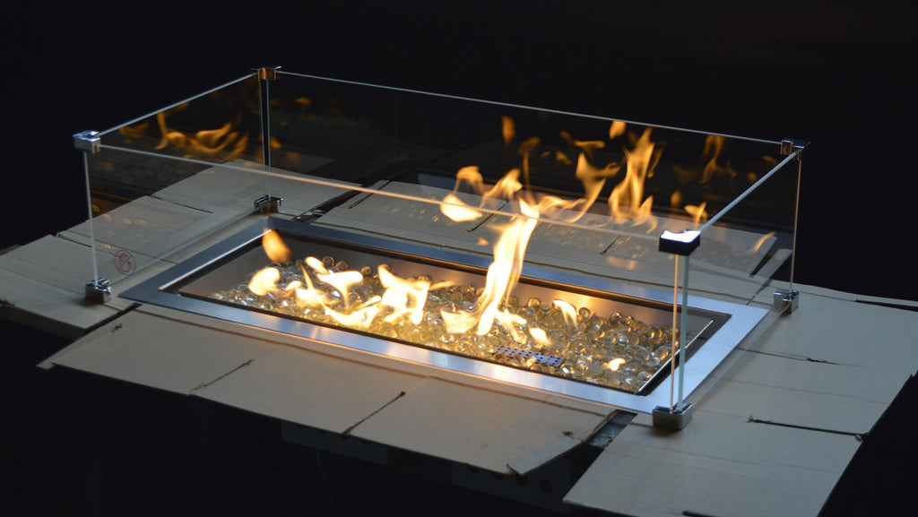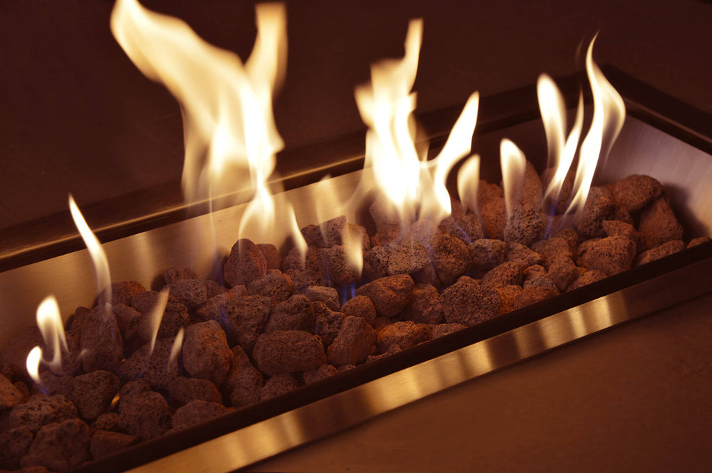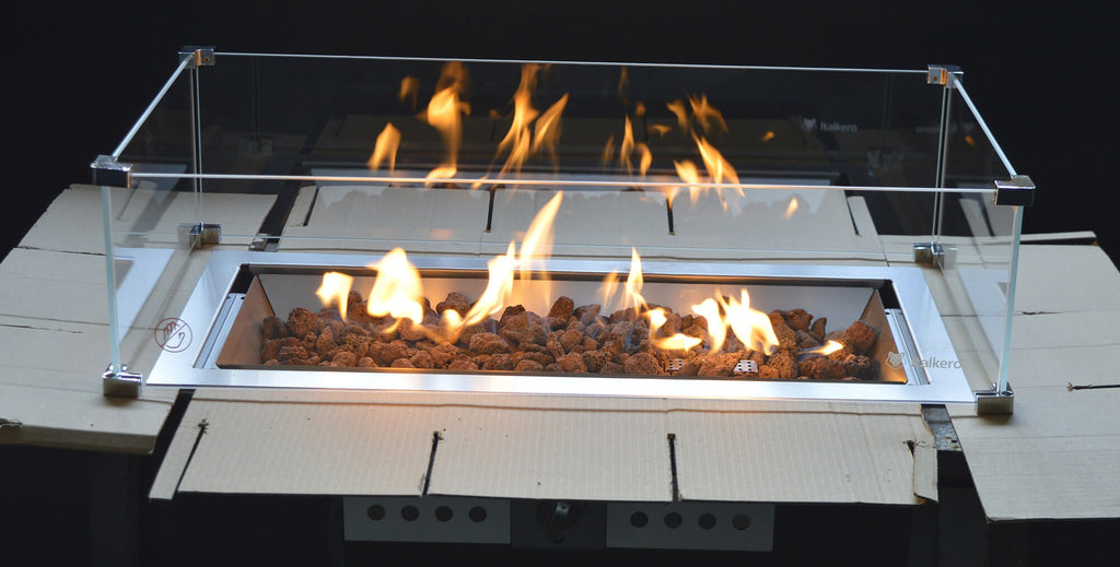 - Ausstattung: Stahlabdeckung, Windschutzglas, Lavasteine, Holz, Glassteine