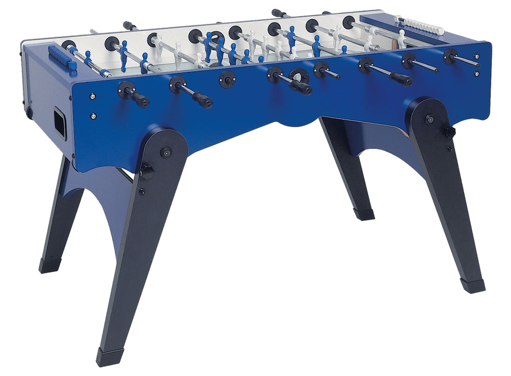 Fußballtisch in Blue MDF mit Reentrant Auctions und Garlando Foldy Folding Legs
