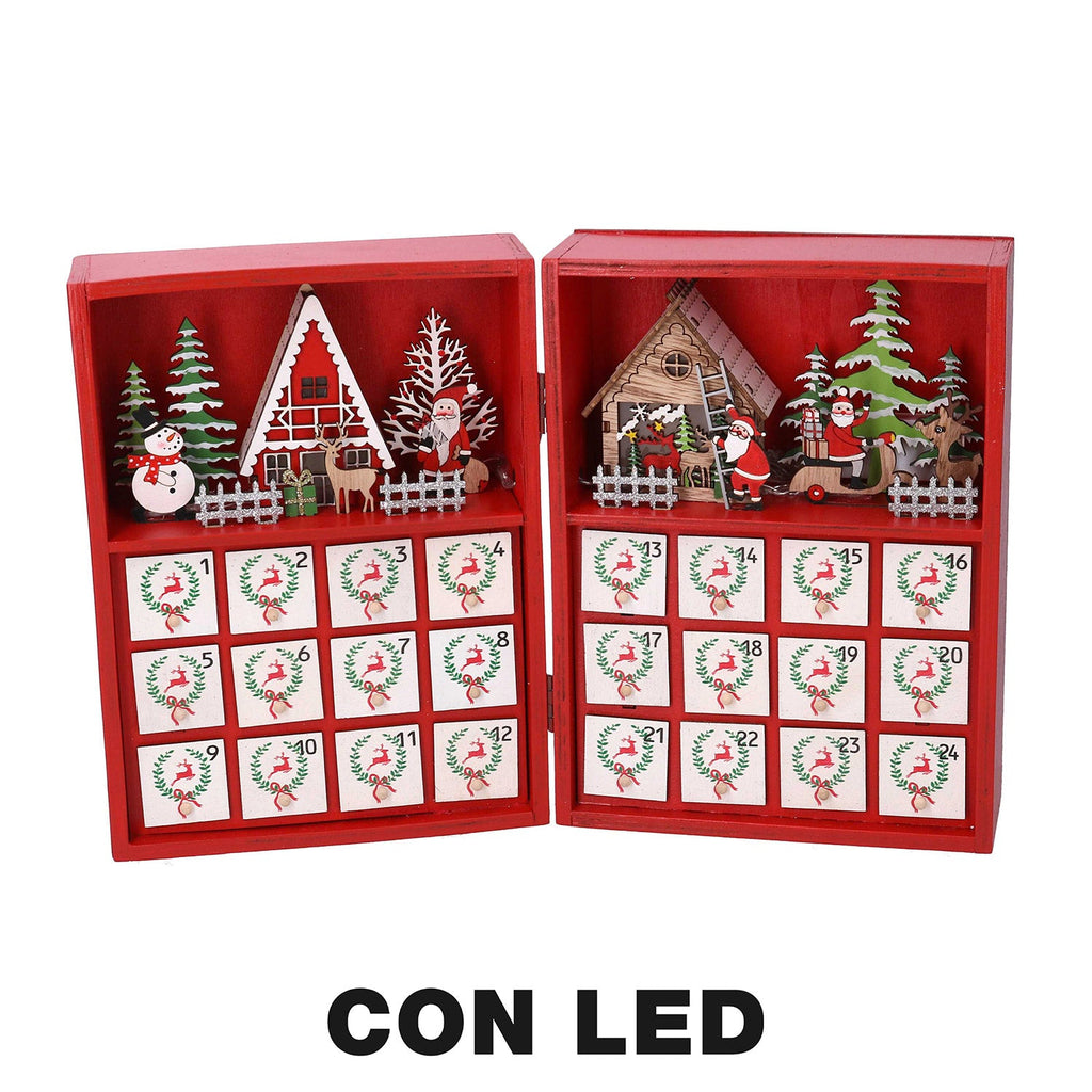 Adventskalender aus Holz mit roter LED cm 36x6xh24