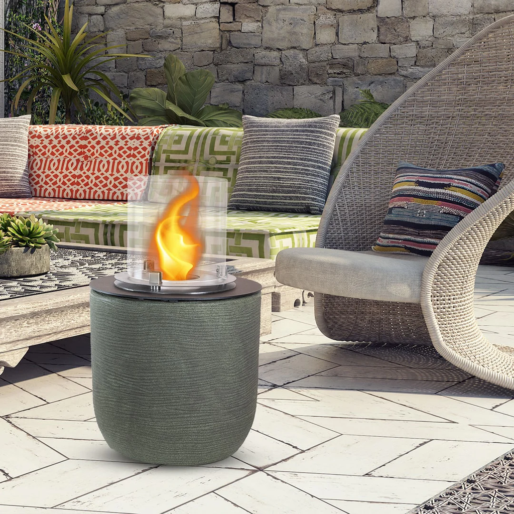 Camino a Bioetanolo Braciere da Pavimento Ø35 x h55 cm per Interno ed Esterno Raffaello Verde Salvia