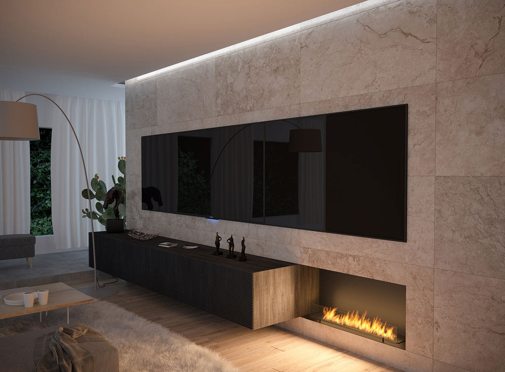 Bioethanol-Einbaukamin 100 x 45 cm mit Glasinnenseite C 1000 V1 Schwarz