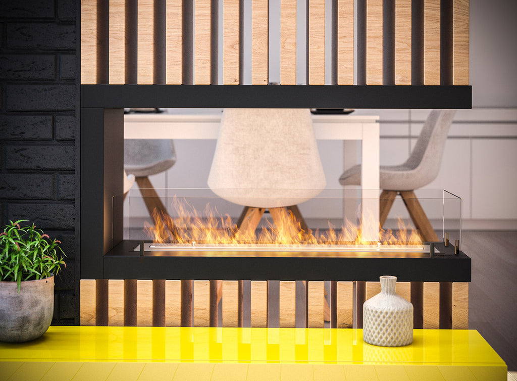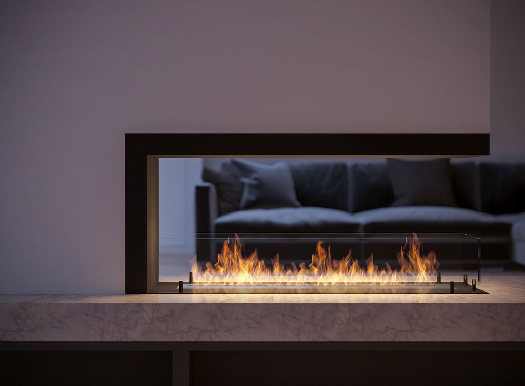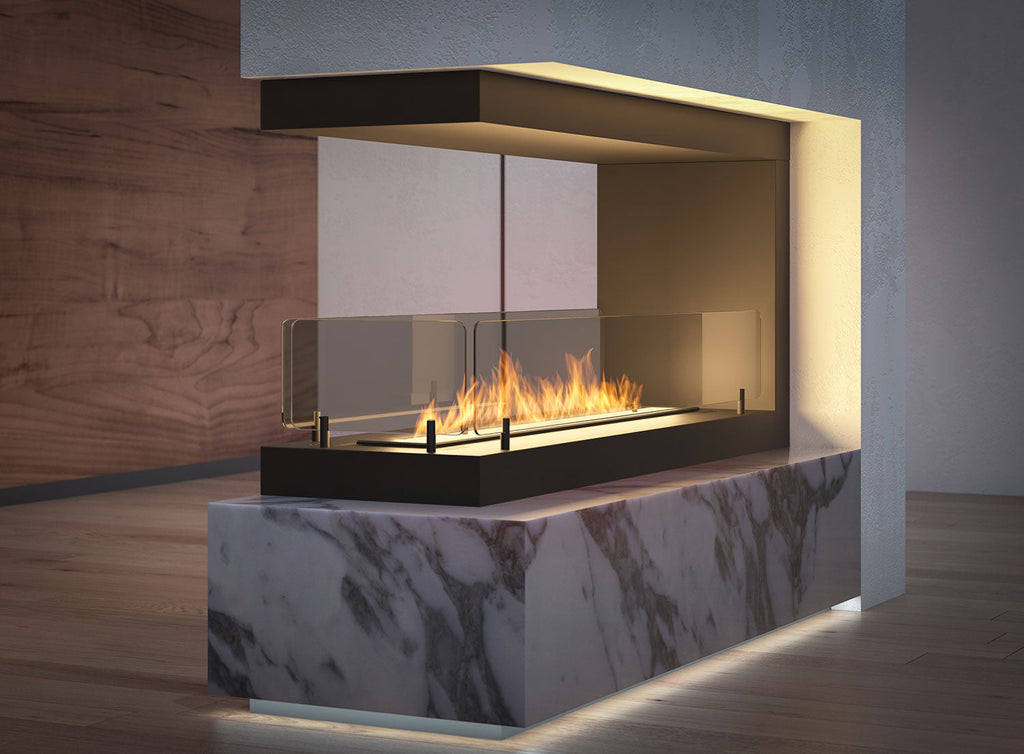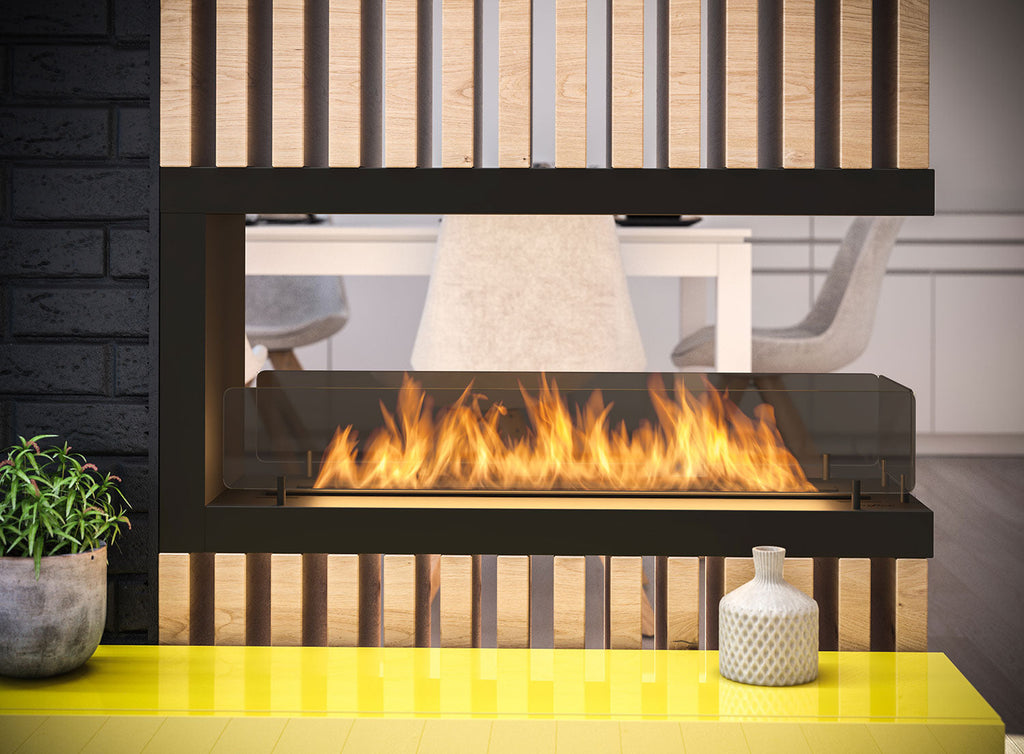 Bioethanol-Einbaukamin 100x50 cm mit Glasinnenseite u 1000 V2 Schwarz