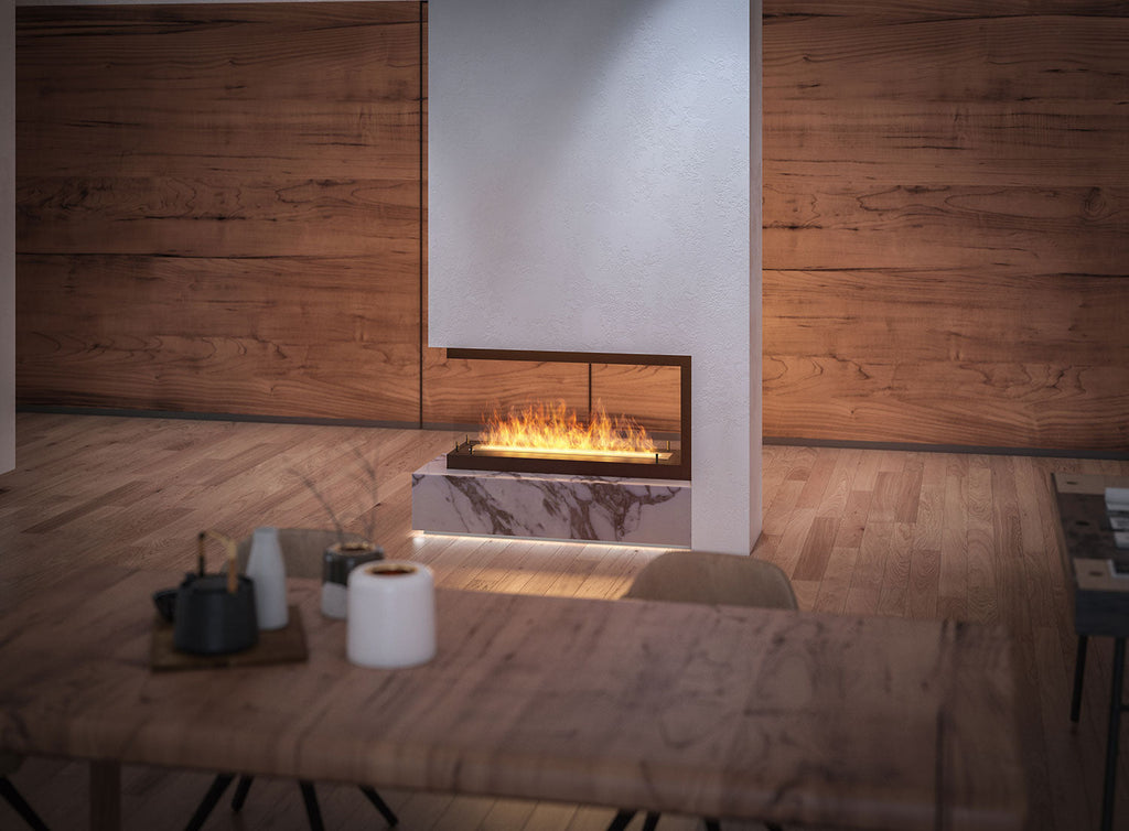 Erweiterung: Der Sicherheitsabstand zur Wand (1,5 cm) lässt die Luft um den Biokamin herum zirkulieren, ohne zusätzliche Montageteile.