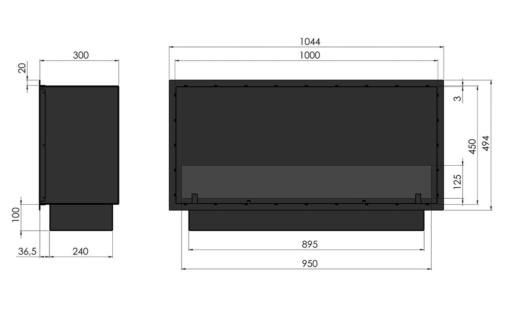 Camino a Bioetanolo da Incasso 104,4x59,4x30 cm Inside 1000 Slim Nero con Vetro