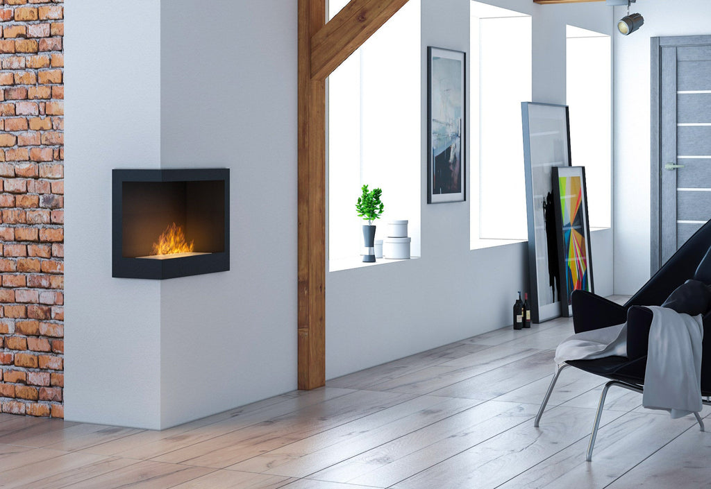 Bioethanol-Einbaukamin 60x45 cm Ecke 600 Links Schwarz